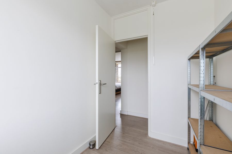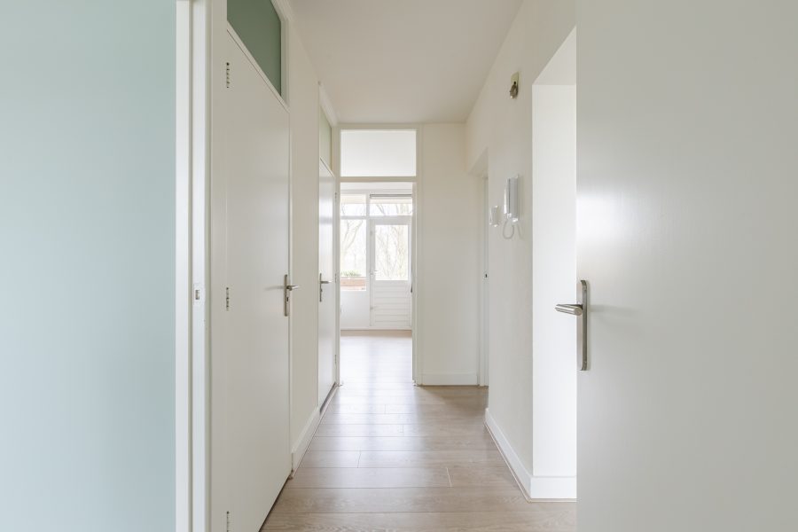 Het appartement ligt op de eerste verdieping van het appartementencomplex. Achter de voordeur bevindt zich een kleine entreehal met meterkast. Vanuit hier loop je door naar een tweede hal, die toegang biedt tot meerdere vertrekken.