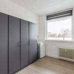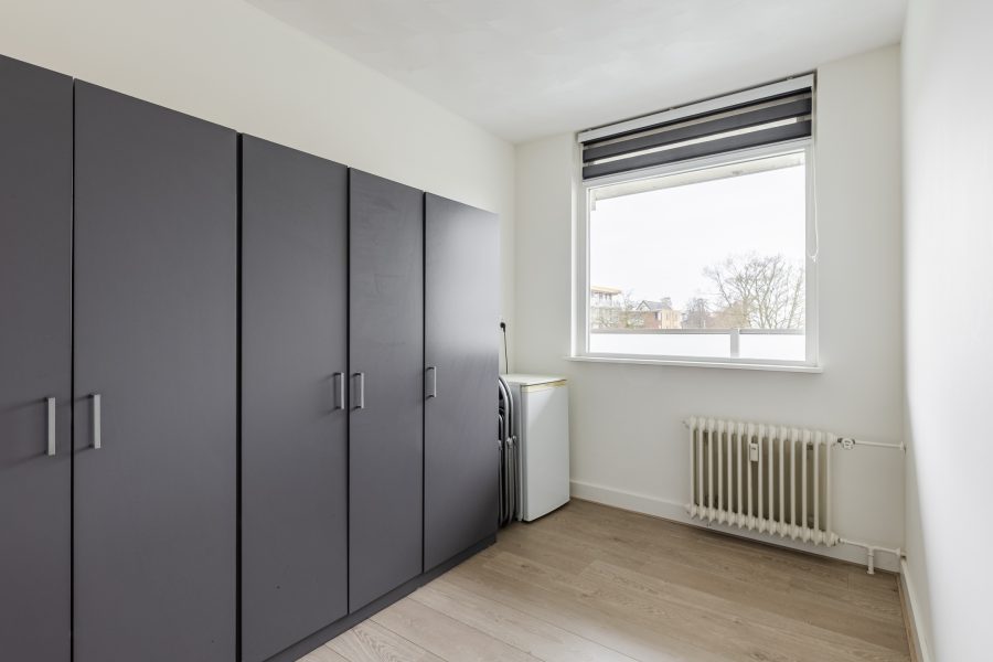 The living room is located at the back and is spacious. This room is partly finished with carpet and partly with laminate flooring. Thanks to the large window, there is plenty of natural light. The apartment has three bedrooms, two at the front and one at the back. All bedrooms are spacious, nicely finished and light.