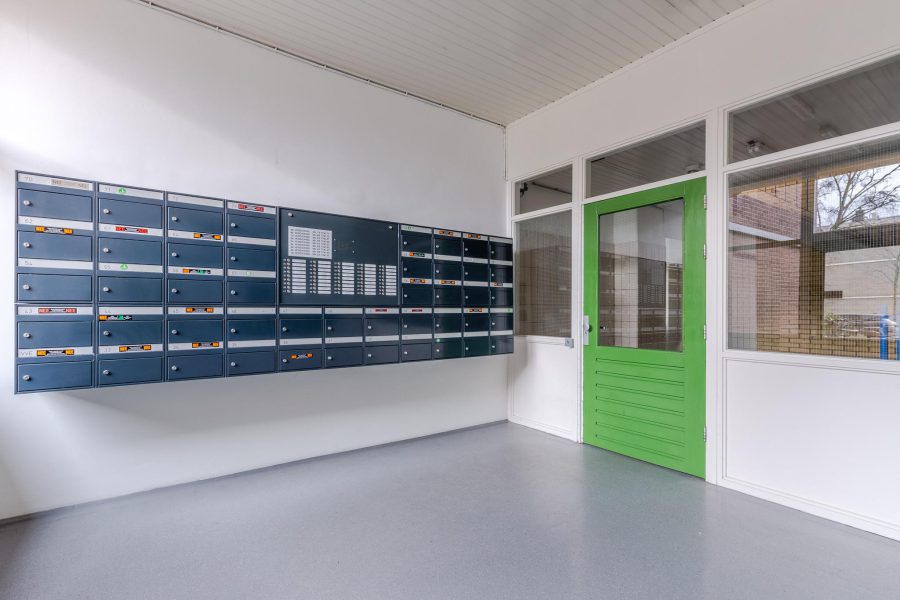 Gesloten entree met bel en intercom. Gemeenschappelijke hal met trappenhuis en lift.
