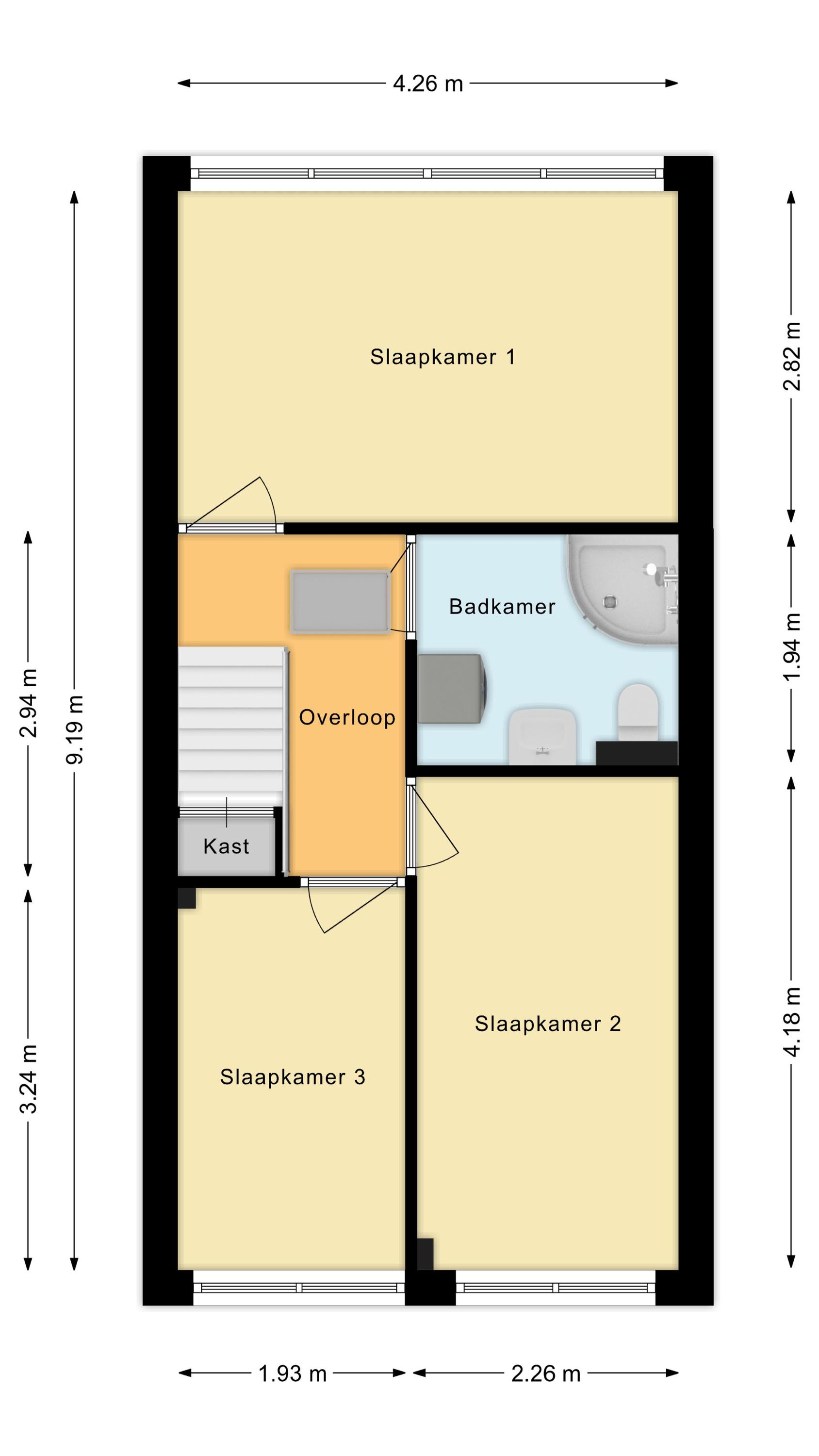 Deze verdieping telt drie slaapkamers en een badkamer. Twee slaapkamers liggen aan de voorzijde en één aan de achterzijde. Alle kamers zijn ruim van formaat en heerlijk licht. Twee kamers beschikken over een laminaatvloer en de andere kamer is voorzien van tapijt.