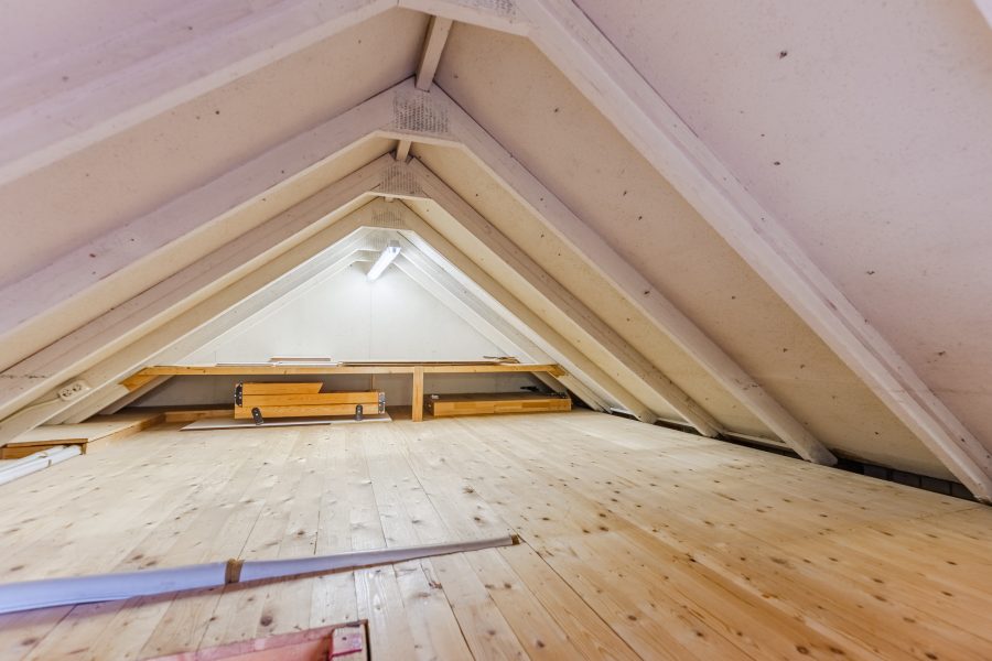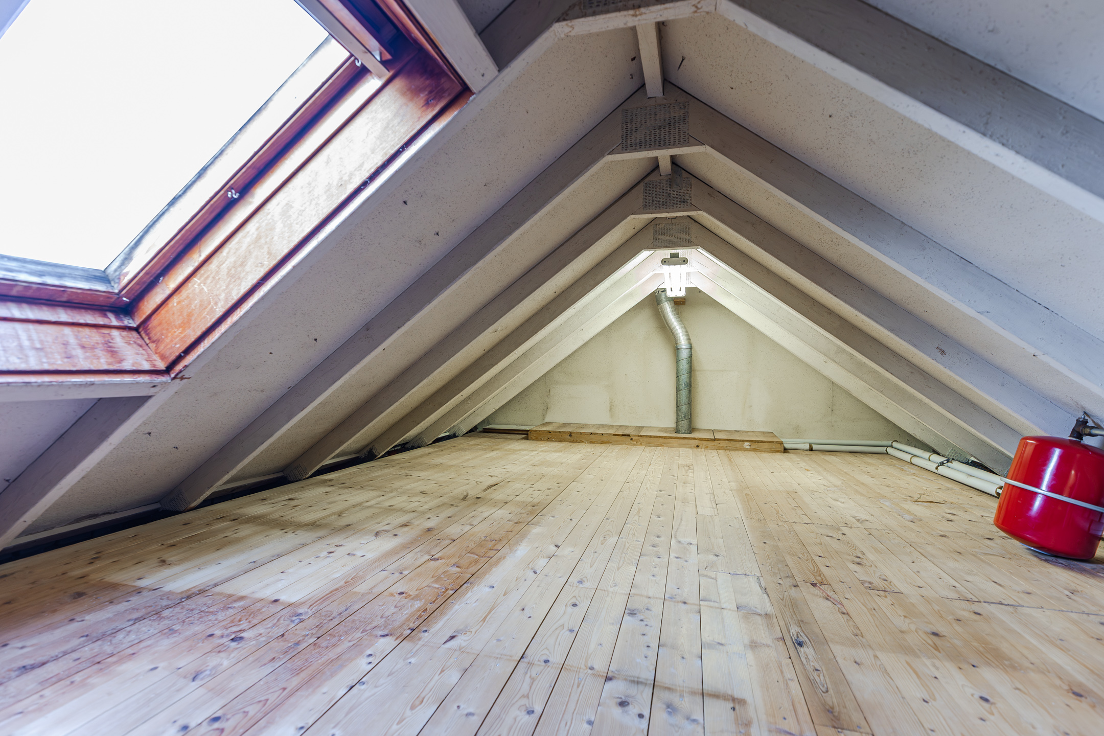 Op de overloop van de eerste verdieping vind je een vlizotrap naar de grote vliering. Hier heb je volop ruimte om spullen op te bergen.