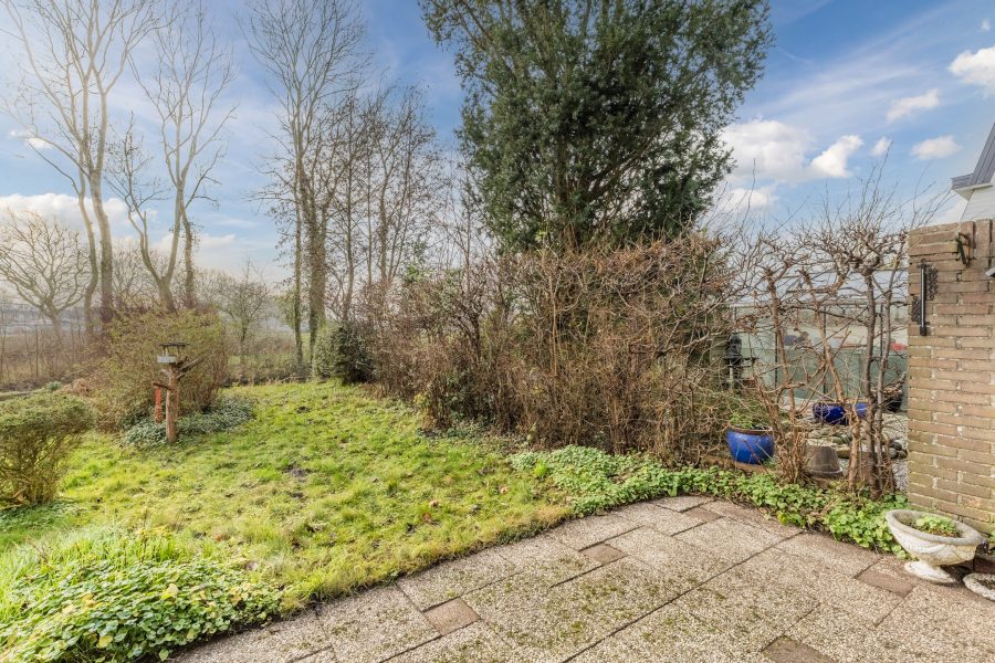 Het huis beschikt over een diepe achtertuin aan het water. De tuin is sfeervol ingericht met zowel tegels als groen. Aan het huis grenst een terras waar je een heerlijke loungeplek kunt creëren. Dankzij de gunstige ligging op het zuidwesten profiteer je van veel zonuren. Hier kun je in alle rust van het zonnetje genieten!