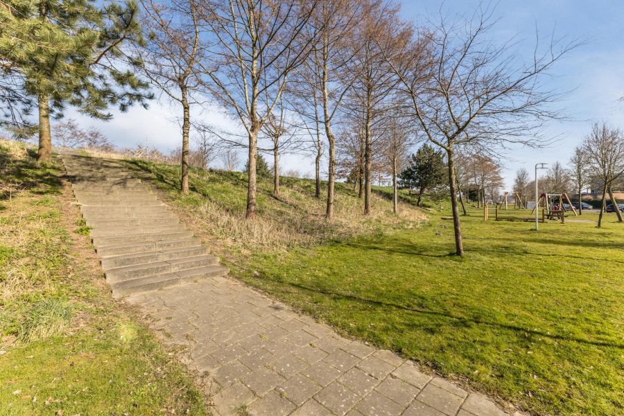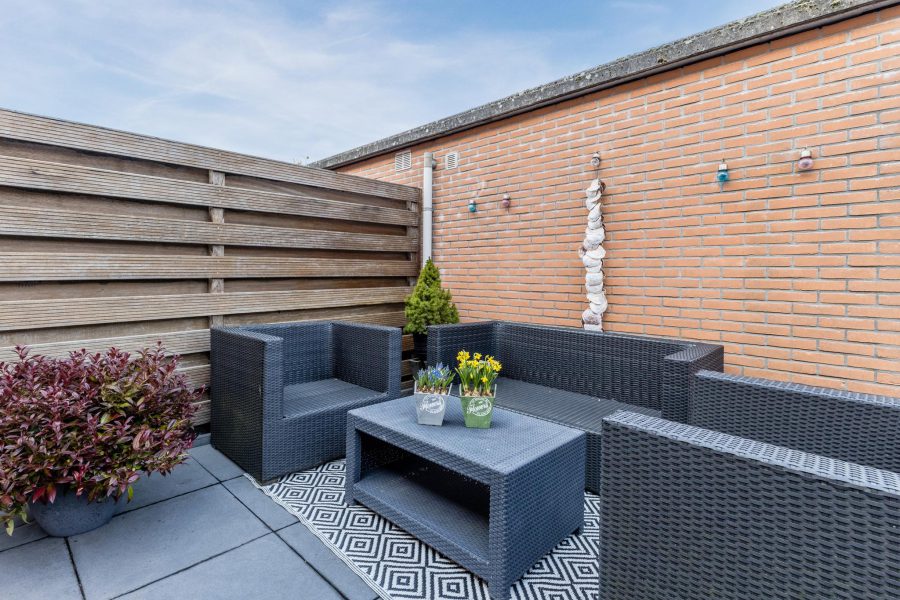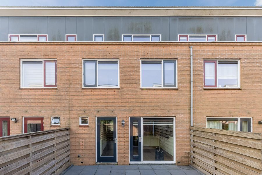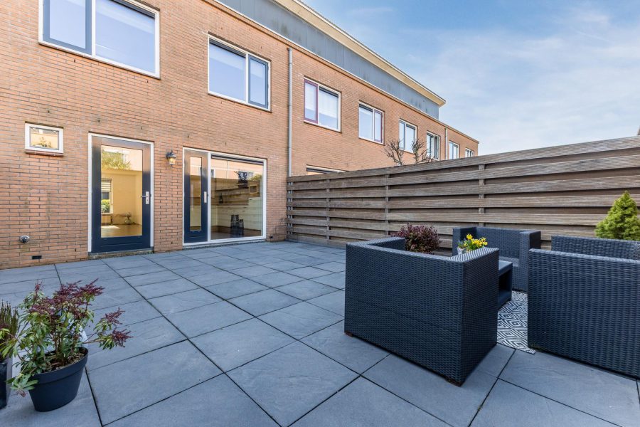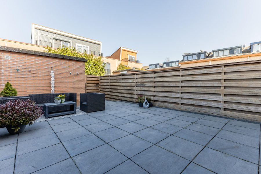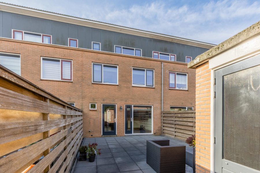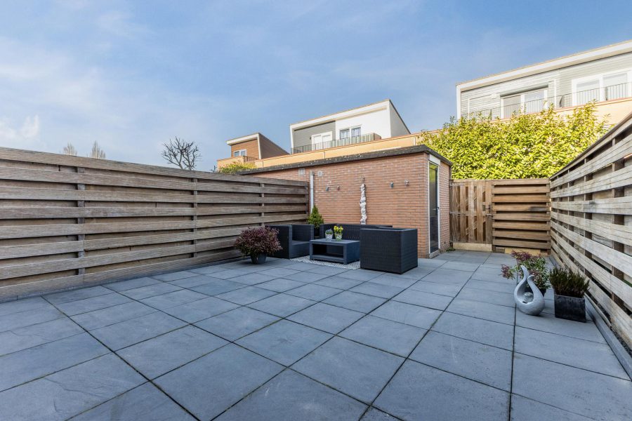 The property has a partly tiled, partly green front garden and a neatly sheltered, tiled rear garden. The garden is large enough to create a nice lounge area and to place a dining table outside to enjoy eating outside with friends and family in the summer months. Children can play nicely and safely here. At the back of the garden is a stone (bicycle) shed with electricity and there is a back entrance.
