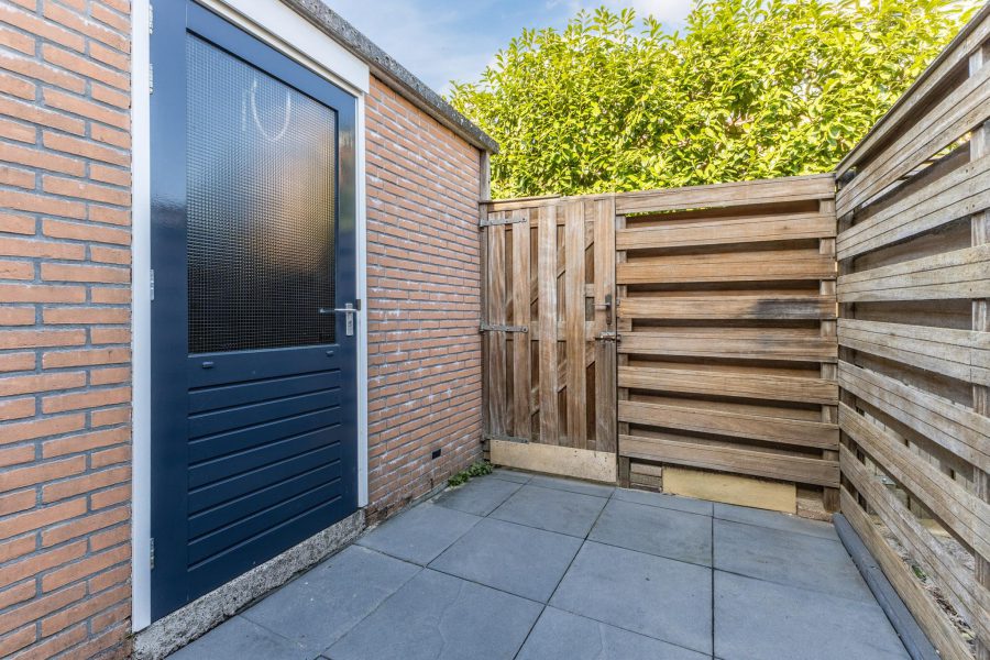 De woning heeft een deels betegelde, deels groene voortuin en een keurig beschutte, betegelde achtertuin. De tuin is groot genoeg om een fijne loungeplek te realiseren en om een eettafel buiten te plaatsen om gezellig met vrienden en familie buiten te eten in de zomermaanden. Kinderen kunnen hier fijn en veilig spelen. Achterin de tuin staat een stenen (fietsen)berging met elektra en er is een achterom.