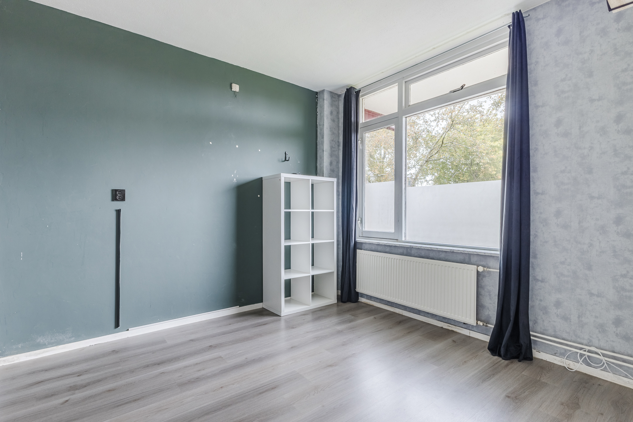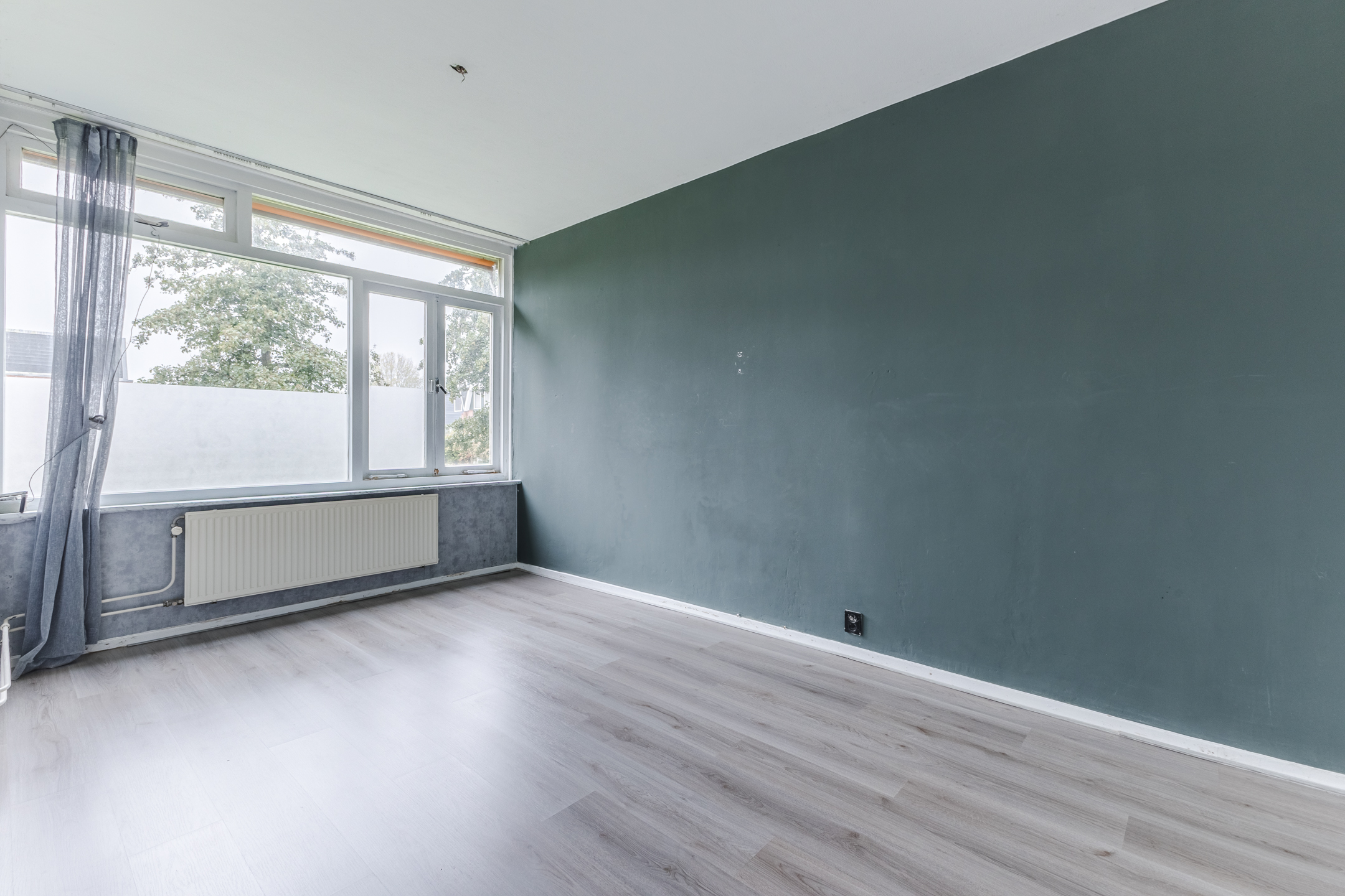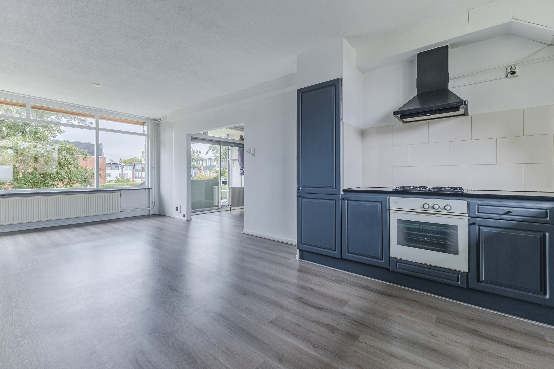 De woonkamer vormt het hart van het appartement en is afgewerkt met een fraaie vloer en strakke wanden. Het is een gezellige leefruimte waar genoeg plek is voor een zit- en eethoek. De grote raampartijen en schuifpui naar het balkon zorgen hier voor een overvloed aan natuurlijk licht. Het balkon biedt ruimte voor een gezellige zithoek en is nog geheel naar eigen smaak in te richten. Het is een heerlijke plek om van het mooie weer en het uitzicht op de groene omgeving te genieten.