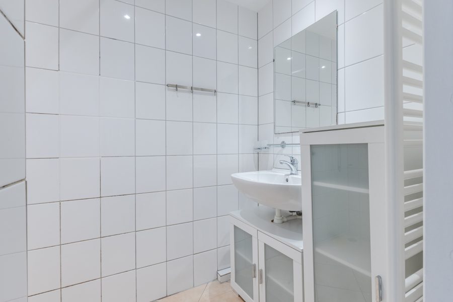 Het appartement beschikt over twee slaapkamers. Beide slaapkamers zijn ruim van formaat en genieten van veel daglicht. De nette badkamer is afgewerkt met beige vloertegels en witte wandtegels. Deze ruimte is uitgerust met een wastafel, designradiator en douche. Hier is gekozen voor inbouwspots als verlichting. Het appartement heeft een separaat toilet.