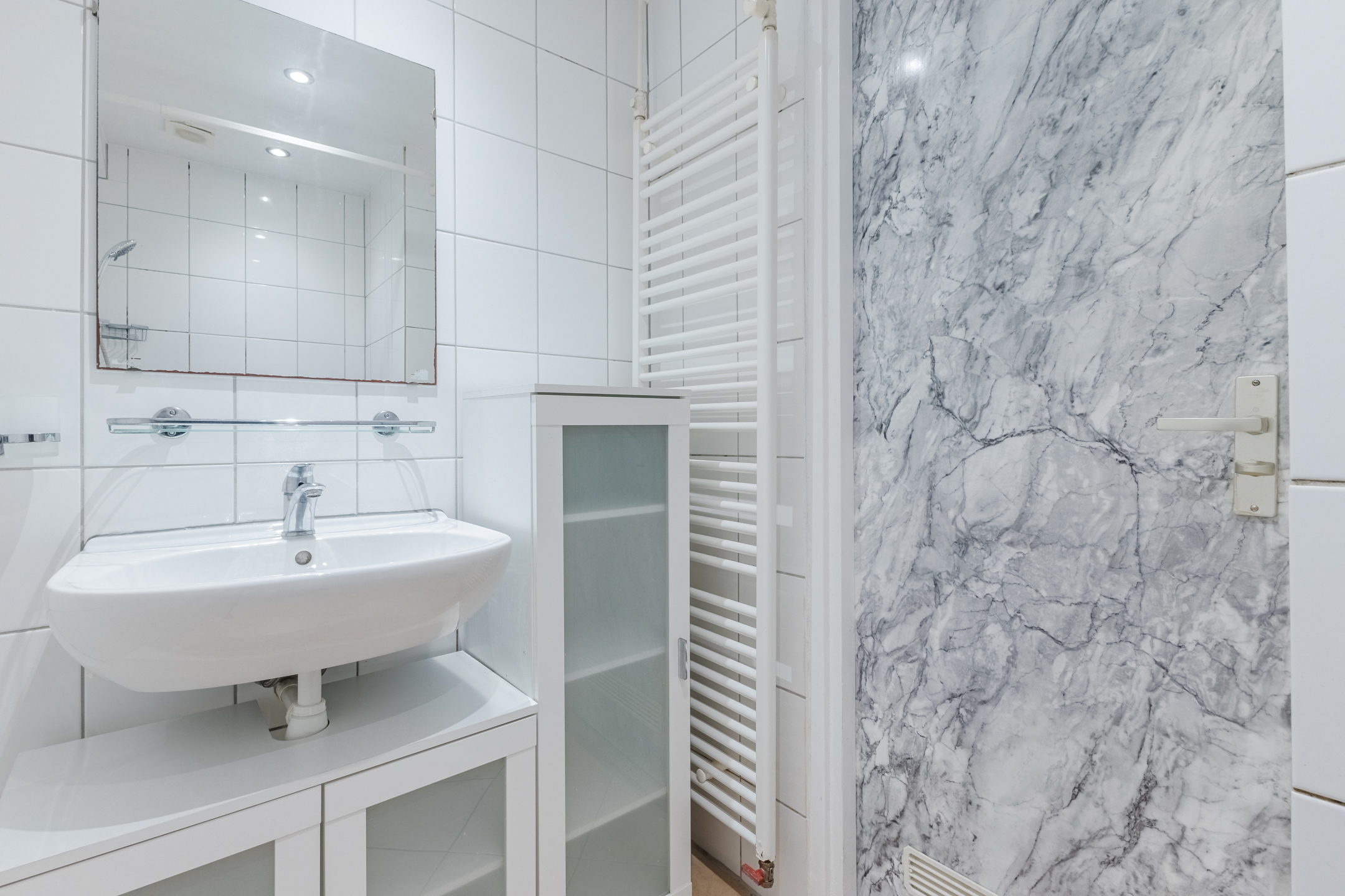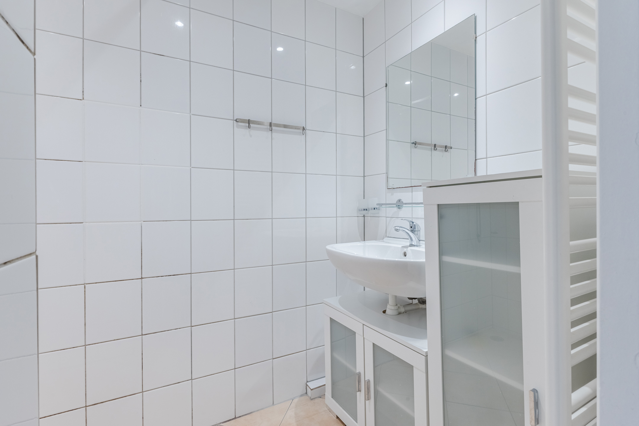 • Nette badkamer met wastafel, designradiator en douche