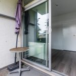 The living room forms the heart of the apartment and is finished with beautiful flooring and sleek walls. It is a cozy living space with enough room for a sitting and dining area. The large windows and sliding doors to the balcony provide an abundance of natural light. The balcony offers space for a cozy sitting area and can be decorated entirely to your own taste. It is a wonderful place to enjoy the beautiful weather and the view of the green surroundings.