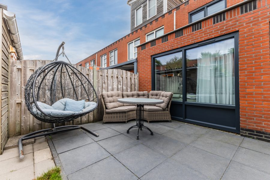 Het huis beschikt over een netjes aangelegde achtertuin, die is ingericht met fraaie tegels. Dit is een heerlijke plek om te loungen in het zonnetje of om gezellig buiten te eten met vrienden en familie. Hier geniet je van de zon van 11:00 uur ’s ochtends tot 21:00 uur ’s avonds. De tuin is rondom uitstekend beschut, waardoor je veel privacy hebt.