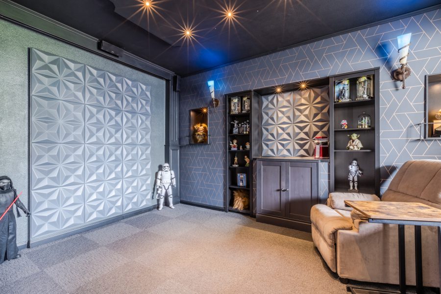 • Nu is op de begane grond een thuisbioscoop gerealiseerd