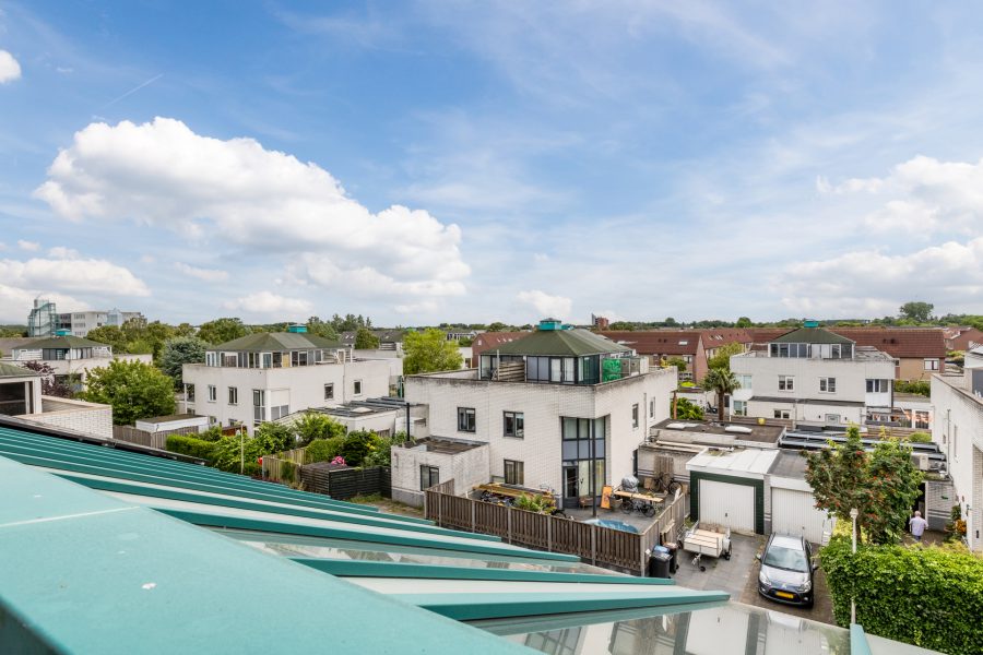 In an ideal, quiet location lies this unique and playfully laid out family home. The house has four floors, a front and back garden, a spacious balcony, a roof terrace and private parking. It is an ideal home for a family, everyone has space inside and there is also plenty to do for children in the surrounding area. The house is spacious and stylish. You have the option to create two living rooms and have two bathrooms and four generous bedrooms. A surprising house in beautiful, green and safe surroundings. An ideal family home, where children will enjoy growing up. We take you through: