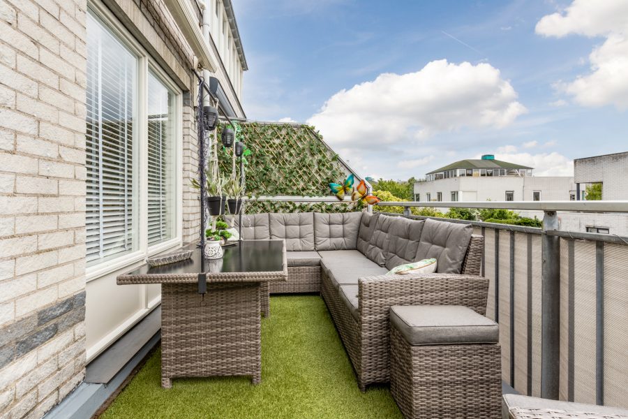 De woning heeft een voortuin, een achtertuin, een ruim balkon en een dakterras. Je kunt altijd wel een plekje in of uit de zon vinden om heerlijk te relaxen! De achtertuin is gesitueerd op het zonnige zuidwesten en heeft een stenen berging.