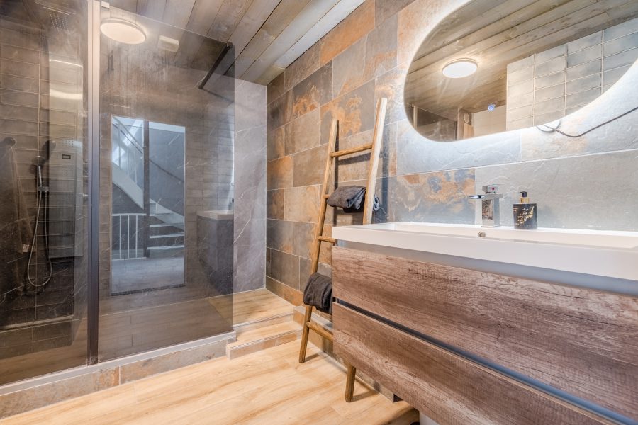 • Contemporary sanitary fittings including wide, luxurious walk-in shower