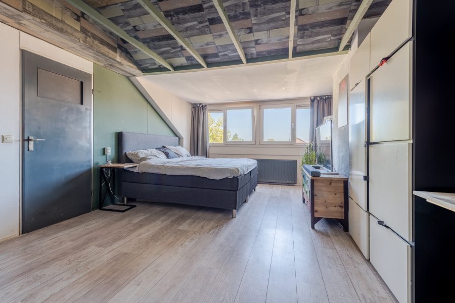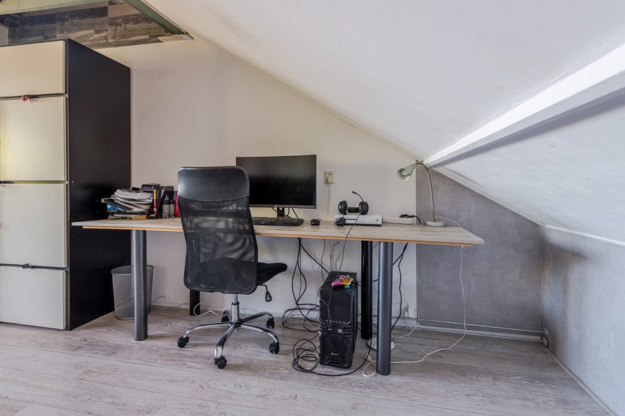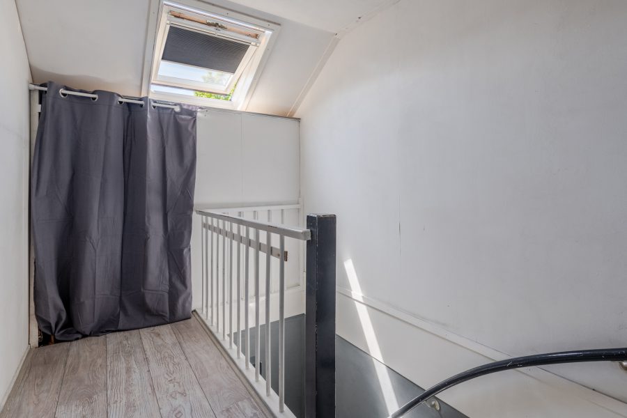 Via de open trap bereiken we deze verdieping waar de ruime, uitstekend afgewerkte vijfde slaapkamer te vinden is en nog veel bergruimte. De slaapkamer is groot genoeg om een fijne thuiswerkplek te realiseren of een hobby uit te oefenen. Op de overloop is plaats voor de aansluiting voor het witgoed en de cv-installatie.