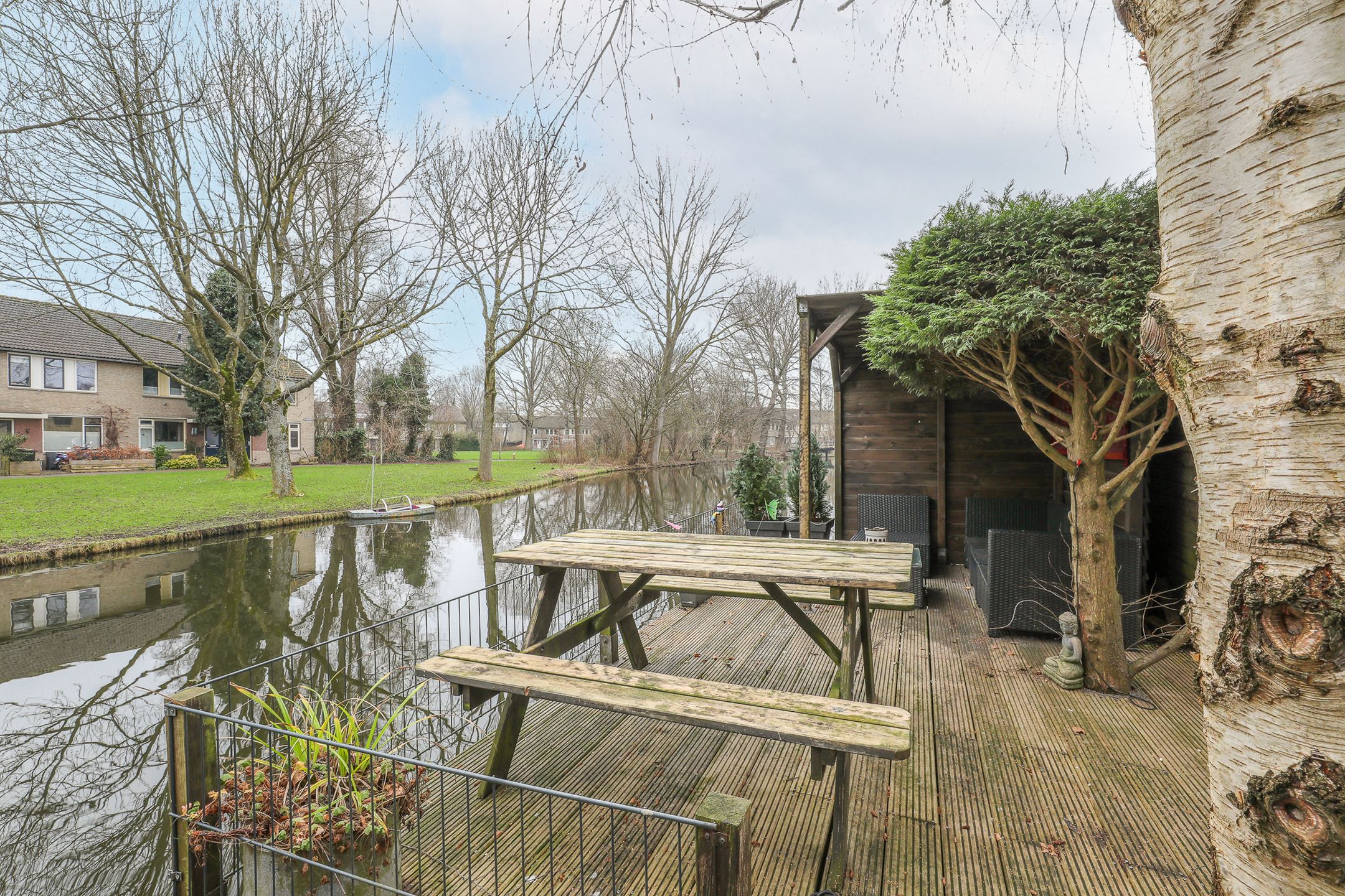 • Zonnige tuin aan het water