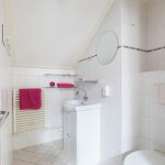 The first floor hosts five spacious bedrooms, two of which have their own private bathroom, while two others have access to the balcony. In addition, there are two separate bathrooms, each equipped with a washbasin (with cabinet), shower, and toilet. One of the rooms features a bathtub, and there is an additional separate toilet.
