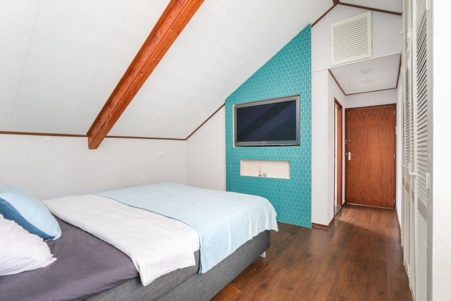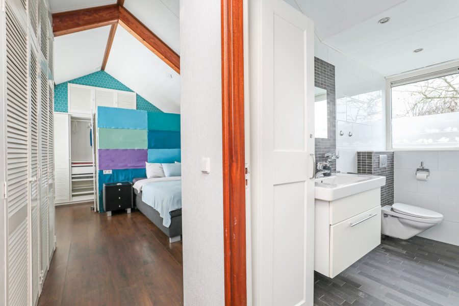Daarnaast vind je op de begane grond ook de eerste slaapkamer, met een eigen badkamer én keuken, perfect voor gasten of bijvoorbeeld een inwonende ouder.