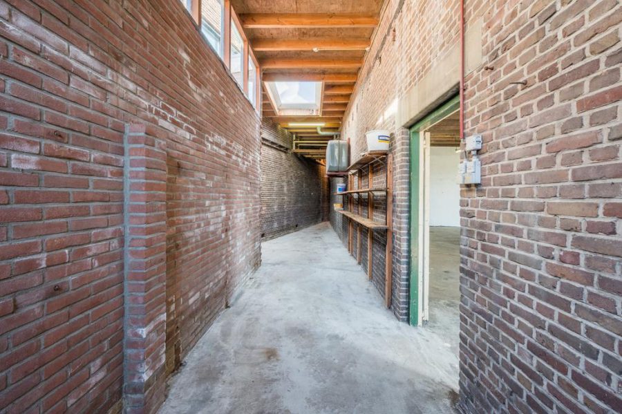 Via het pad naar de loods is het bedrijfsgebouw te bereiken. Op de locatie staan meerdere inpandige bedrijfsruimten. Dankzij de ruime hoeveelheid ramen en lichtkoepels beschikt het pand over veel daglicht. In deze ruimte bevinden zich tevens de meterkast en een aparte berging. Het totale oppervlak van het gebouw bedraagt 328 m². Het hoofdgebouw, daterend uit 1918, is voorzien van een betonnen vloer, evenals het zijgebouw.