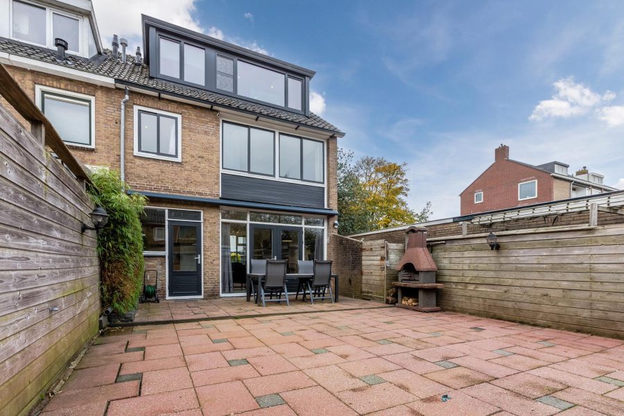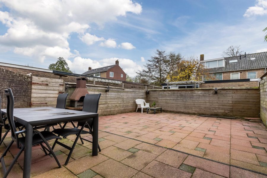 The house has a partially green and mostly tiled front, side and back garden. The deep, sheltered backyard is fully tiled and attached to the house is a terrace. Here you can place a large dining table to socialize with family and friends during the summer months. Attached to the house is an outdoor awning. The garden is large enough to create a nice lounge area as well. There is a back entrance.