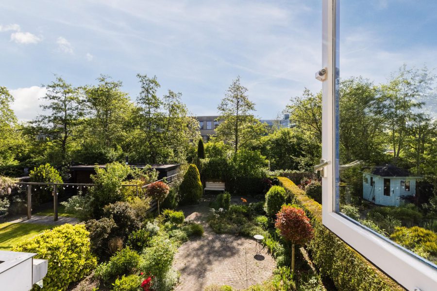 The property has a partly green, partly paved front garden with private driveway. You have an unobstructed view here. The sunny, deep back garden is also partly paved but mainly green. The garden is well cared for and offers a lot of privacy. You can create lovely lounge areas here. Attached to the house is an awning so you can always sit in the shade. Children can play safely here.