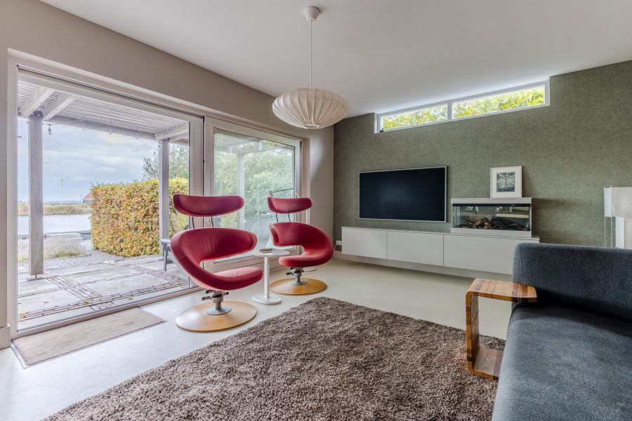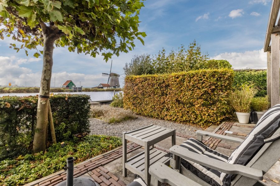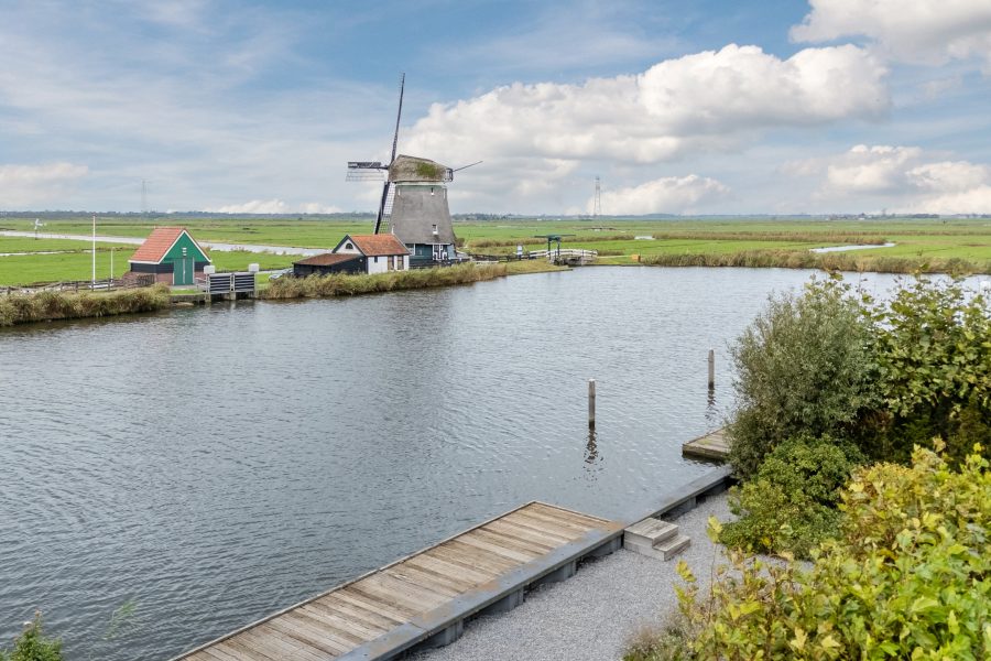 The backyard borders open water and includes a private jetty, allowing direct boat access to Nauerna, the Alkmaardermeer, or the Zaan River.
