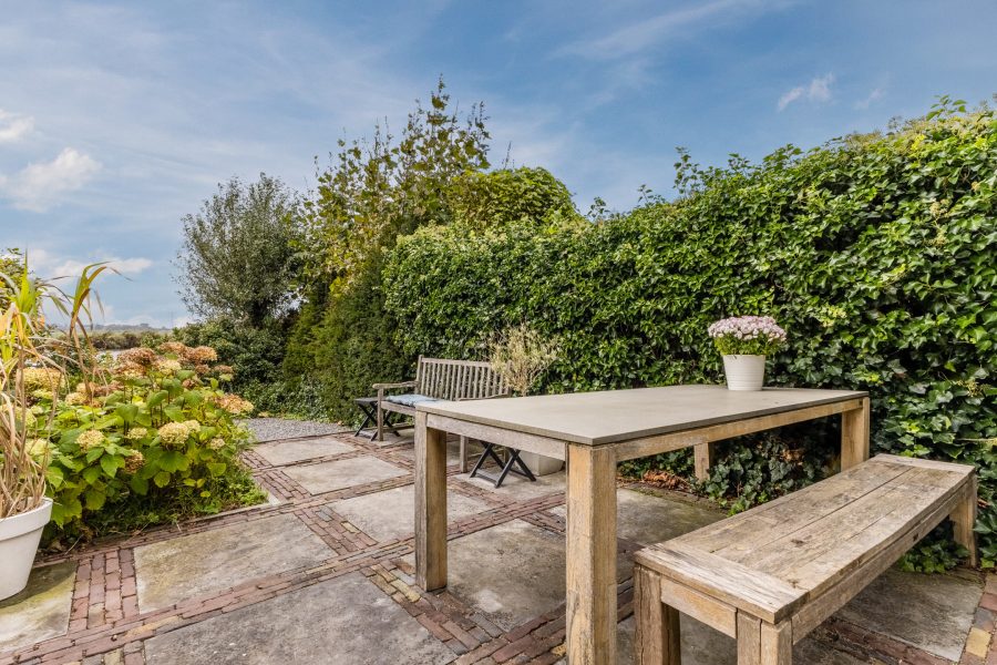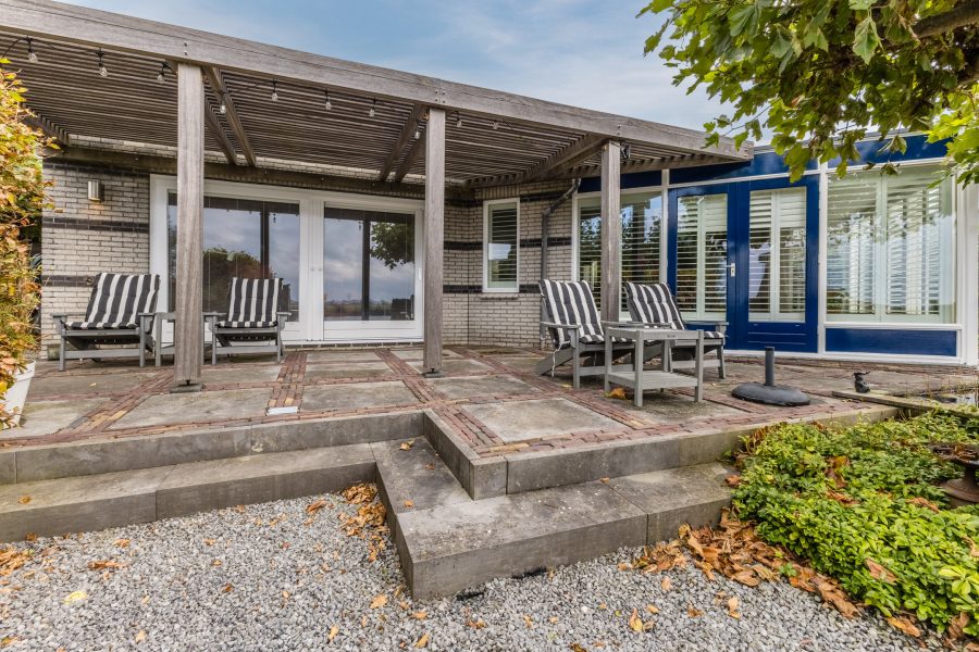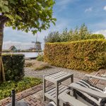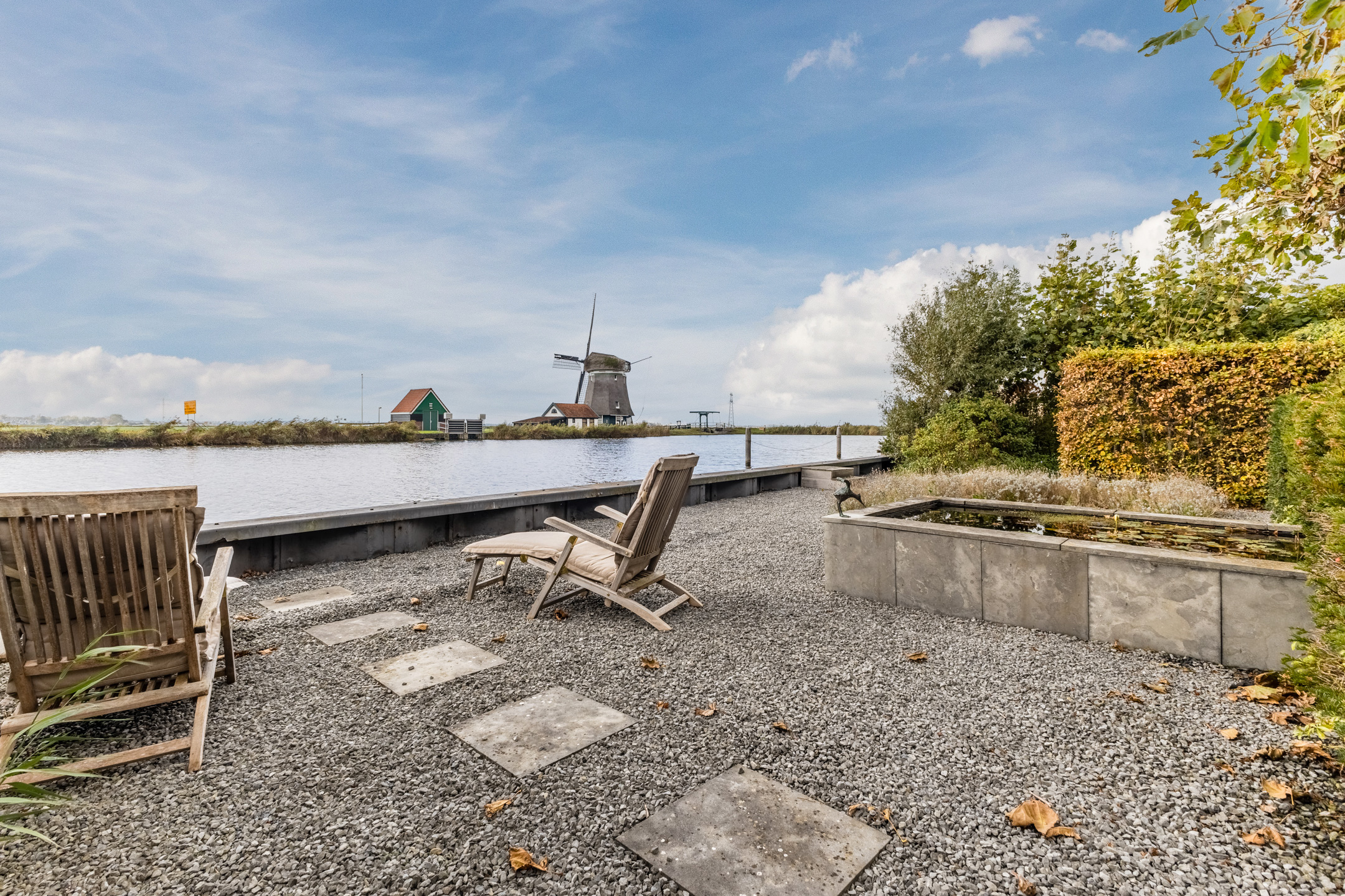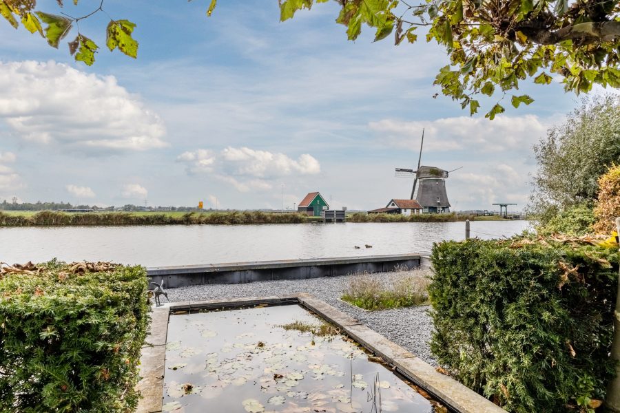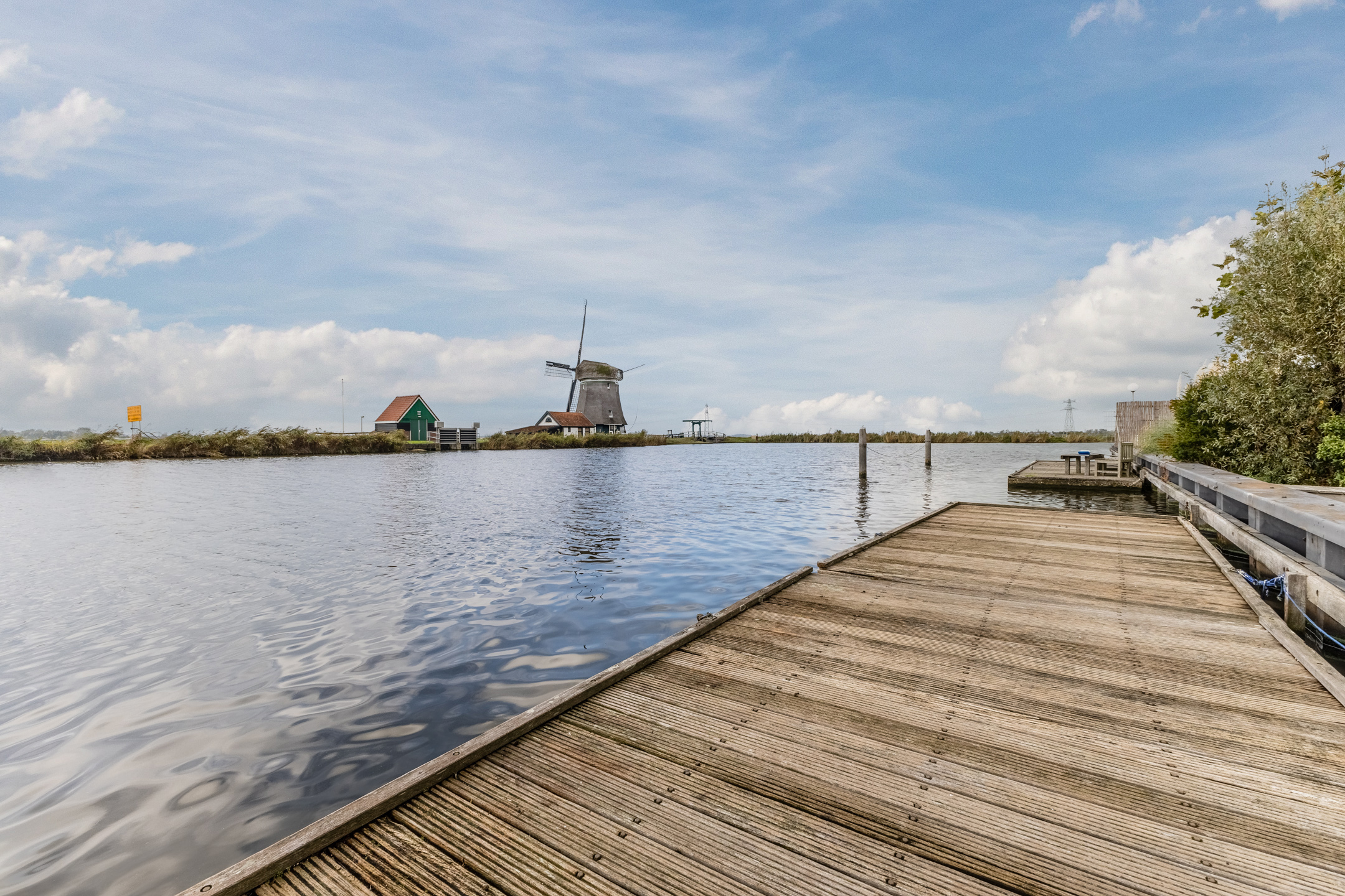De mooi aangelegde tuin ligt rondom de woning, zodat er altijd een plekje in de zon te vinden is. Aan de achterzijde grenst de tuin aan open vaarwater, met aanlegsteiger en een prachtig uitzicht over de weilanden en molen De Woudaap. Hier geniet je dagelijks van rust, natuur, weidevogels en schitterende zonsondergangen.