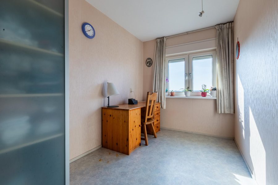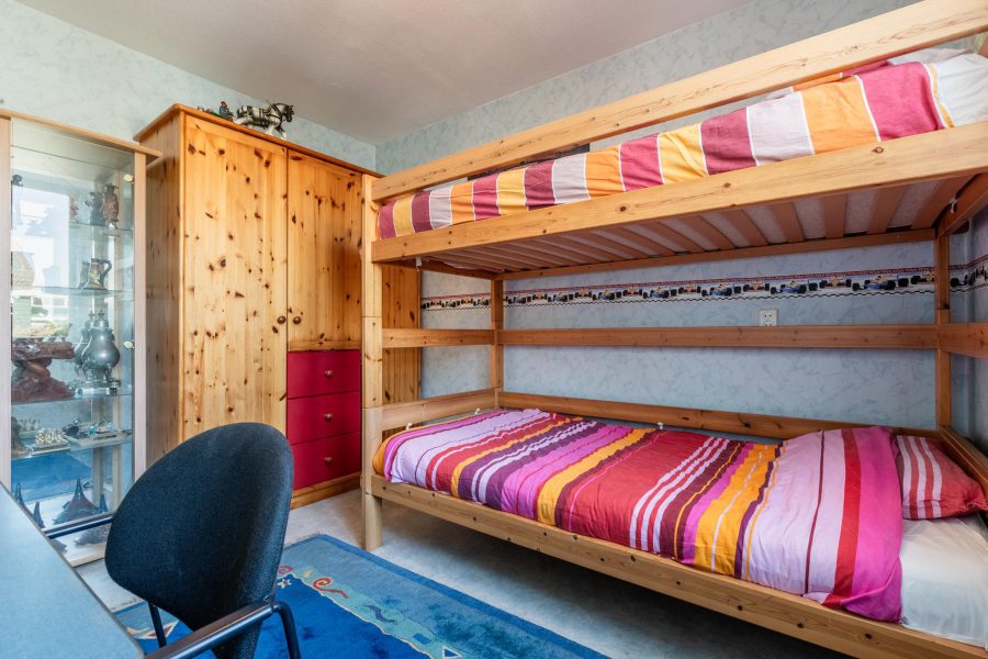 This floor can be accessed via the open staircase. Here you will find the two remaining bedrooms and plenty of enclosed storage space. The front bedroom has a dormer window. On the landing you will find the connection for the washing machine, the central heating system and technical installation.