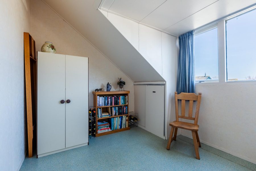 Via de open trap is deze verdieping bereikbaar. Hier zijn de twee overige slaapkamers te vinden en veel afgesloten bergruimte. De slaapkamer aan de voorzijde heeft een dakkapel. Op de overloop vind je de aansluiting voor de wasmachine, de cv-installatie en technische installatie.