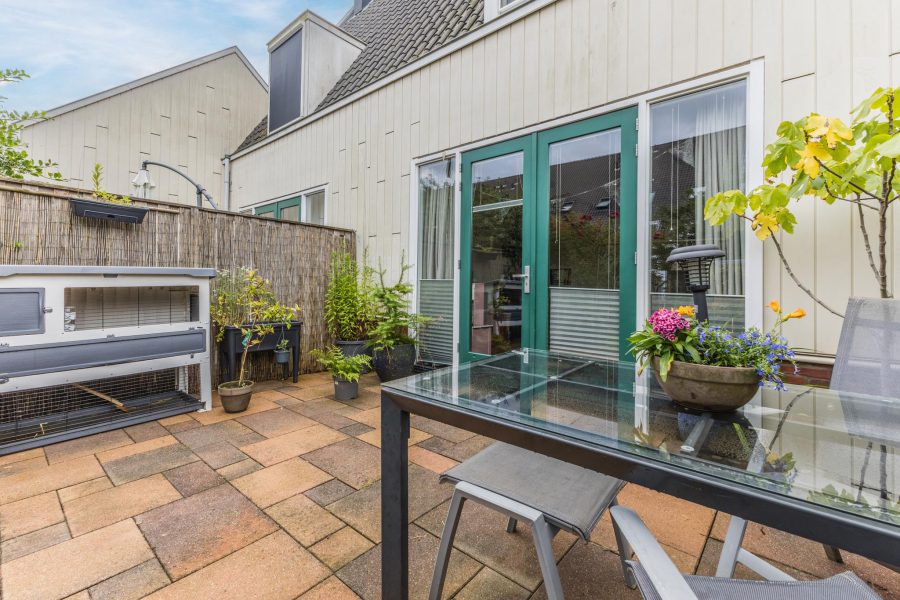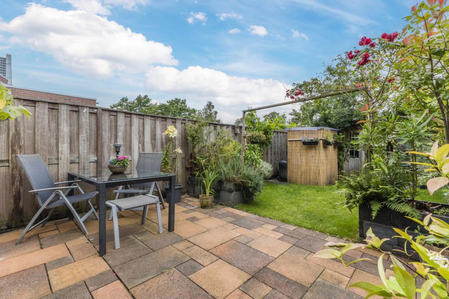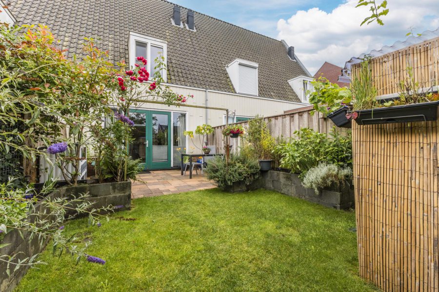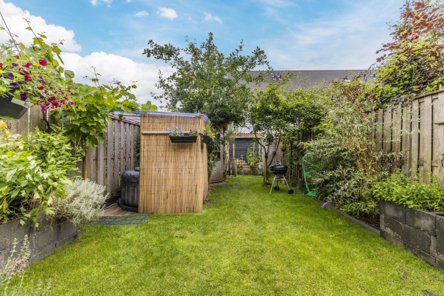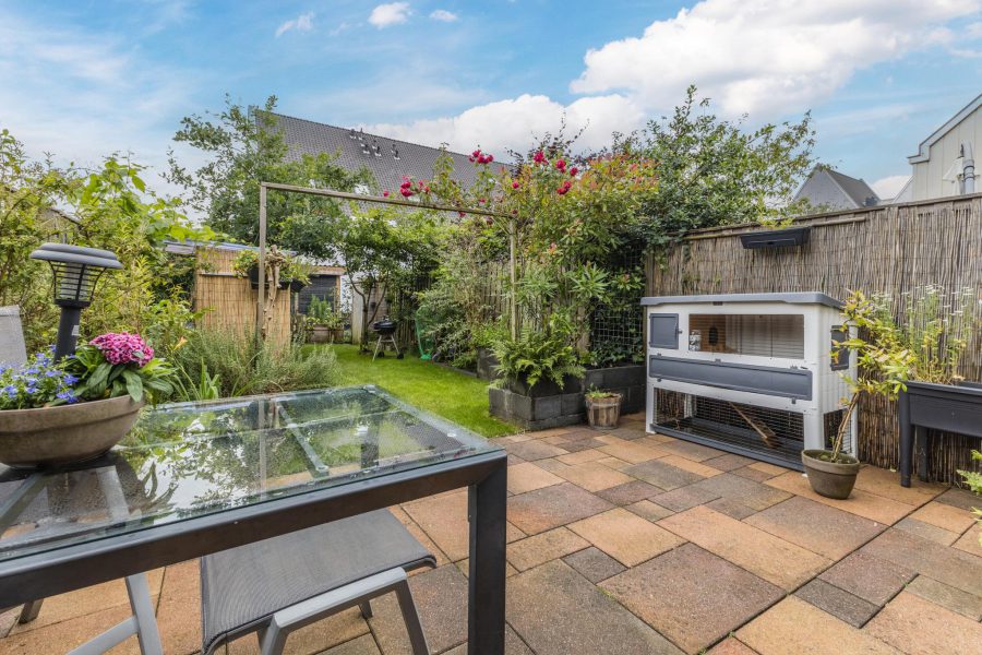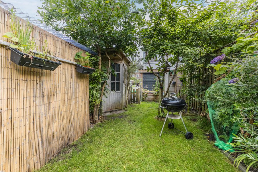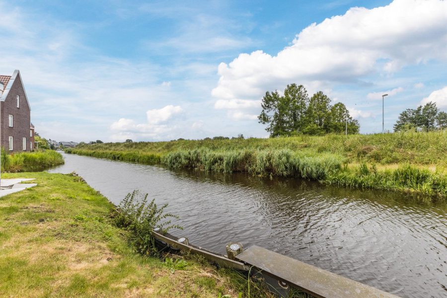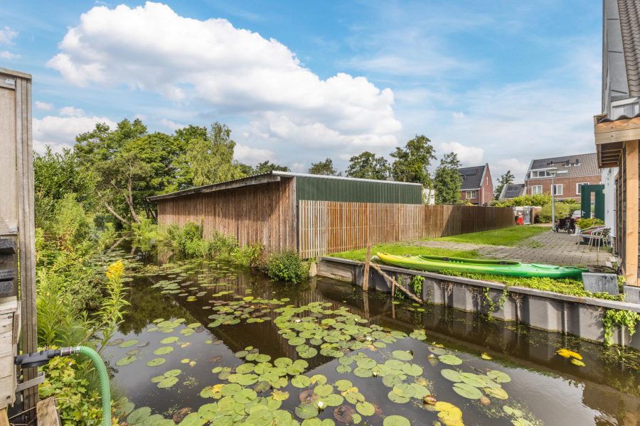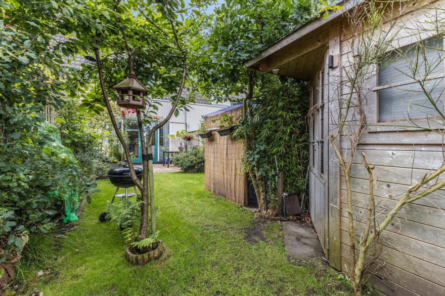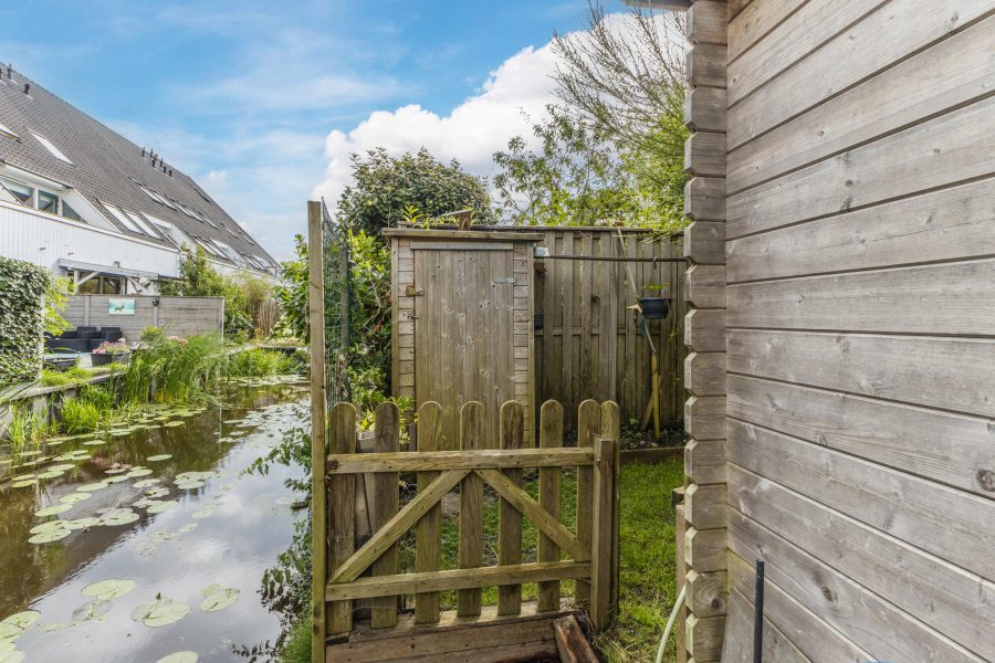 The property has a tiled front garden facing south. Here you can create a cosy seating area. The deep (13.49 m), largely green and romantic backyard borders on open waterways. Adjacent to the house is a tiled terrace where you can create a nice lounge area and there is plenty of room for outdoor dining. For children, it is a lovely, safe playground. The garden is equipped with a shed.
