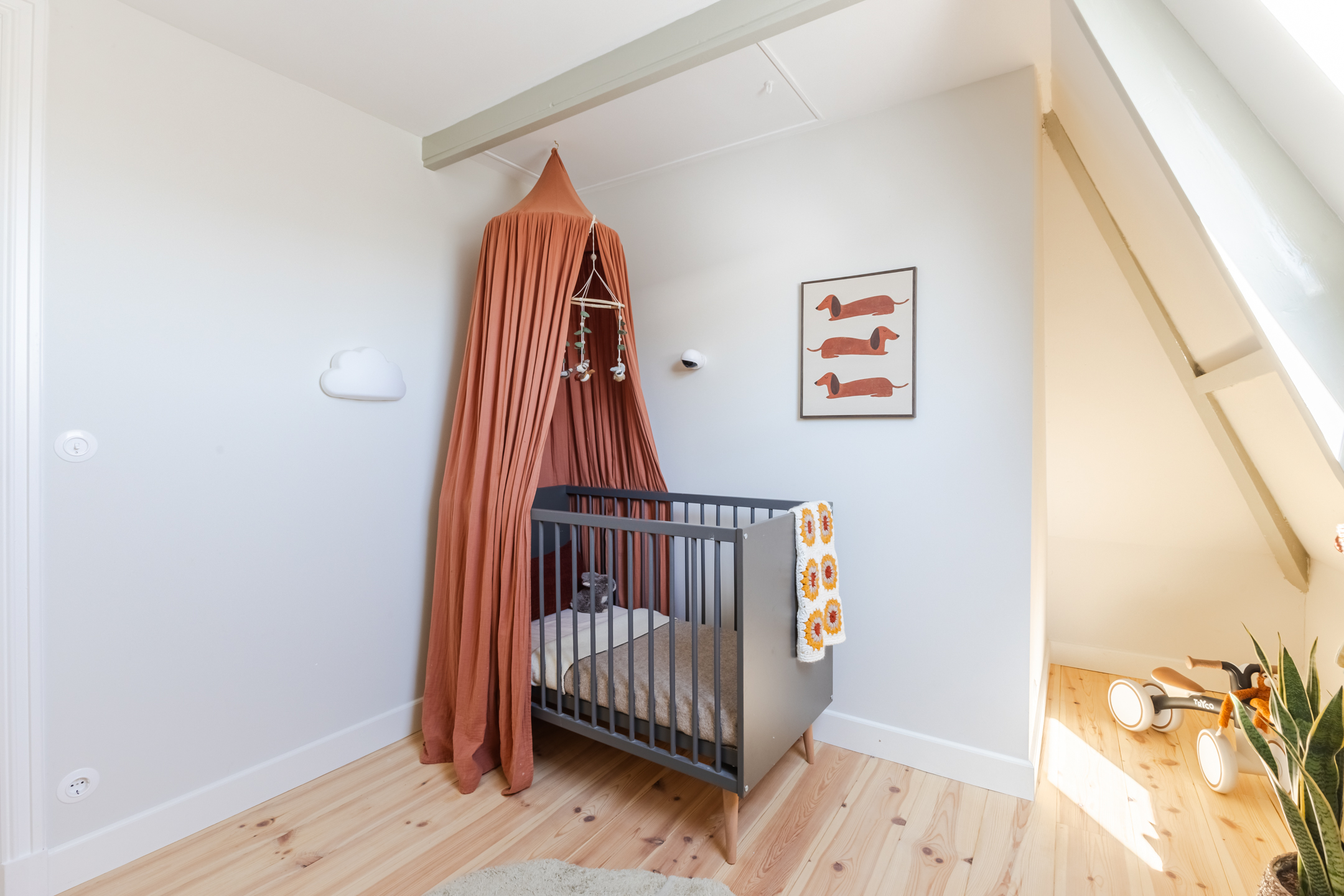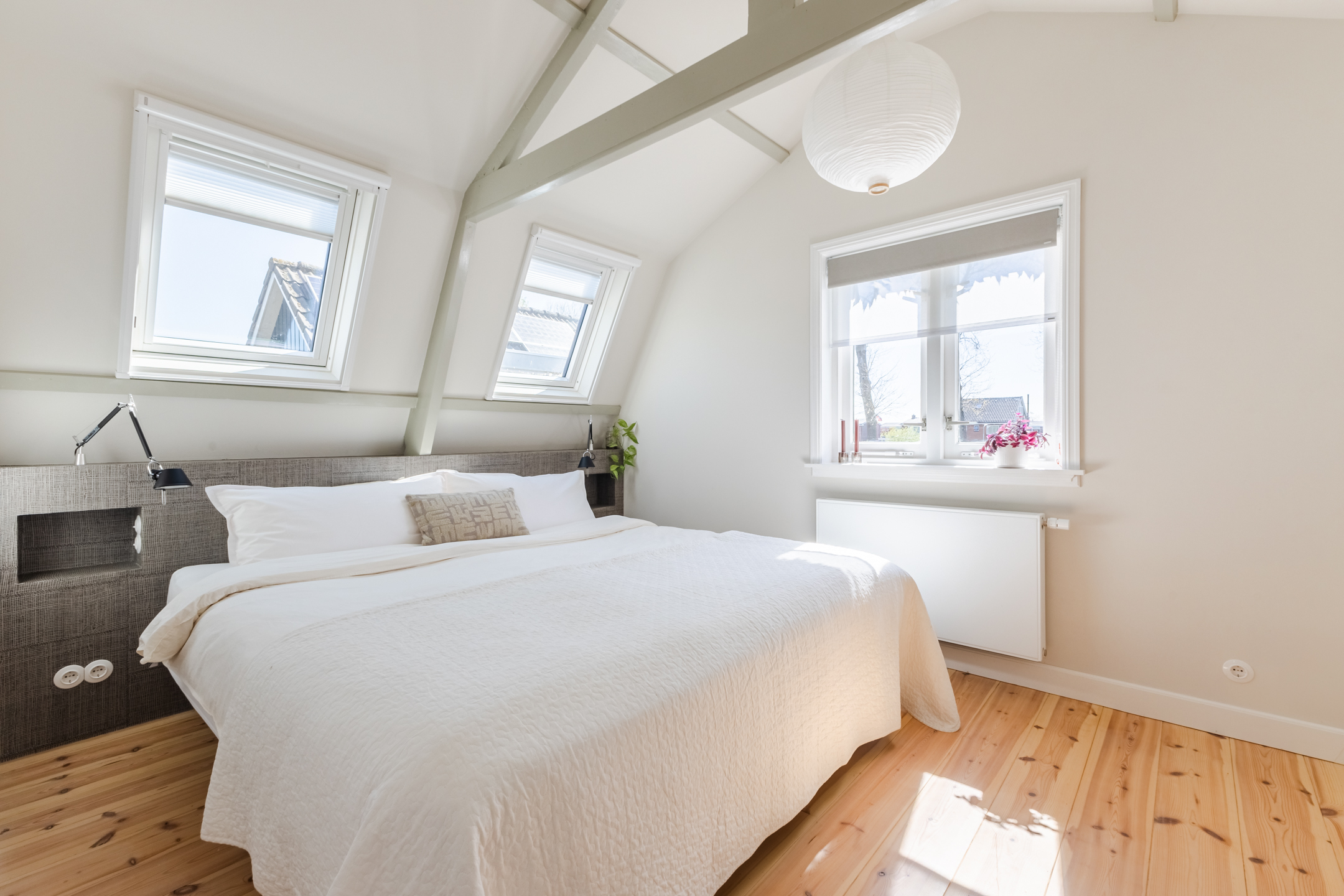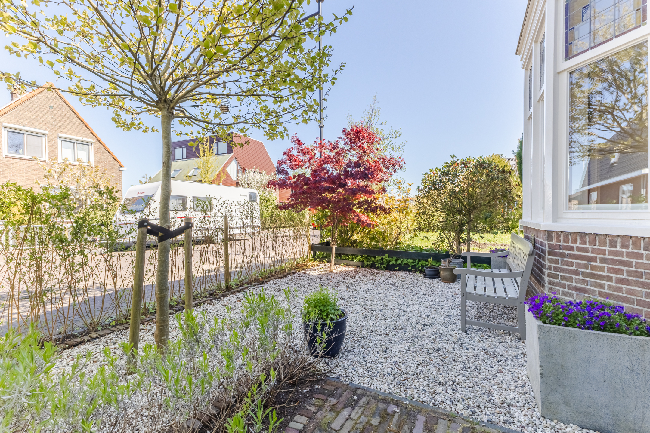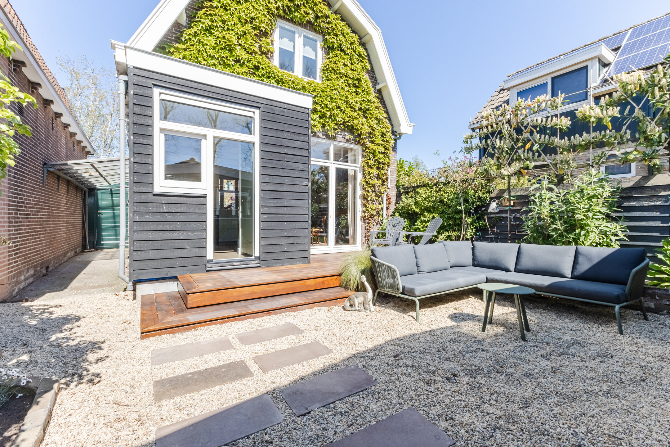 What a wonderful garden! This backyard is modern and attractively landscaped with a combination of wooden decking, gravel and greenery. Directly adjacent to the house is a wooden deck with space for a cozy seating area. The rest of the garden also offers plenty of room for a seating area or dining spot. Thanks to its south-facing location, you’re guaranteed plenty of sunshine. You can enjoy the sun here in complete peace, as the garden is well-sheltered.