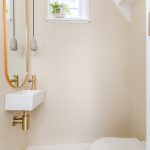 • Luxury bathroom with toilet, sink and walk-in shower