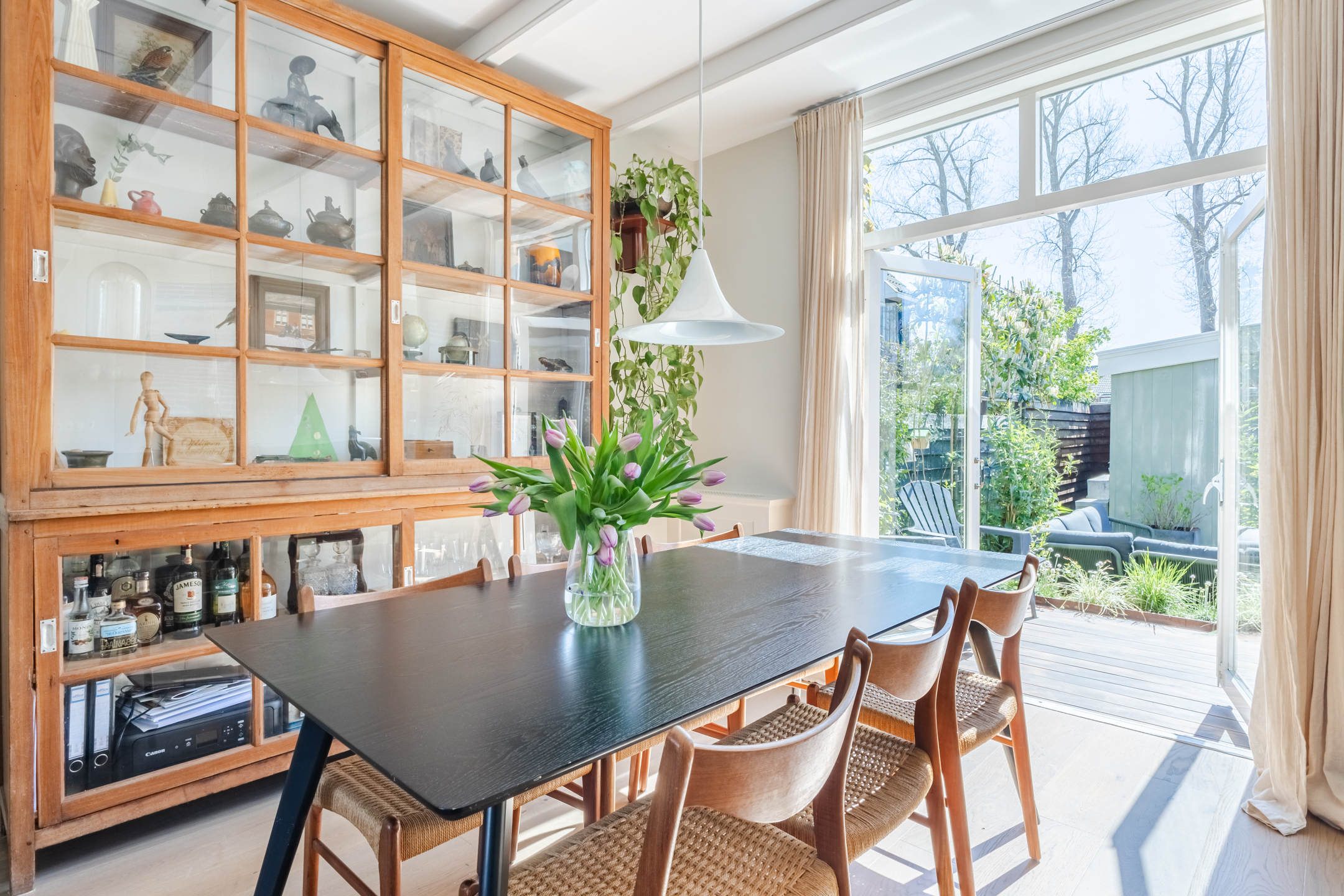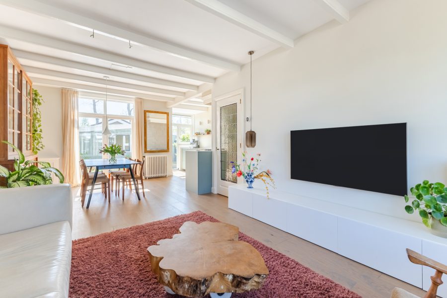 • Doorzonwoonkamer met erker en openslaande tuindeuren