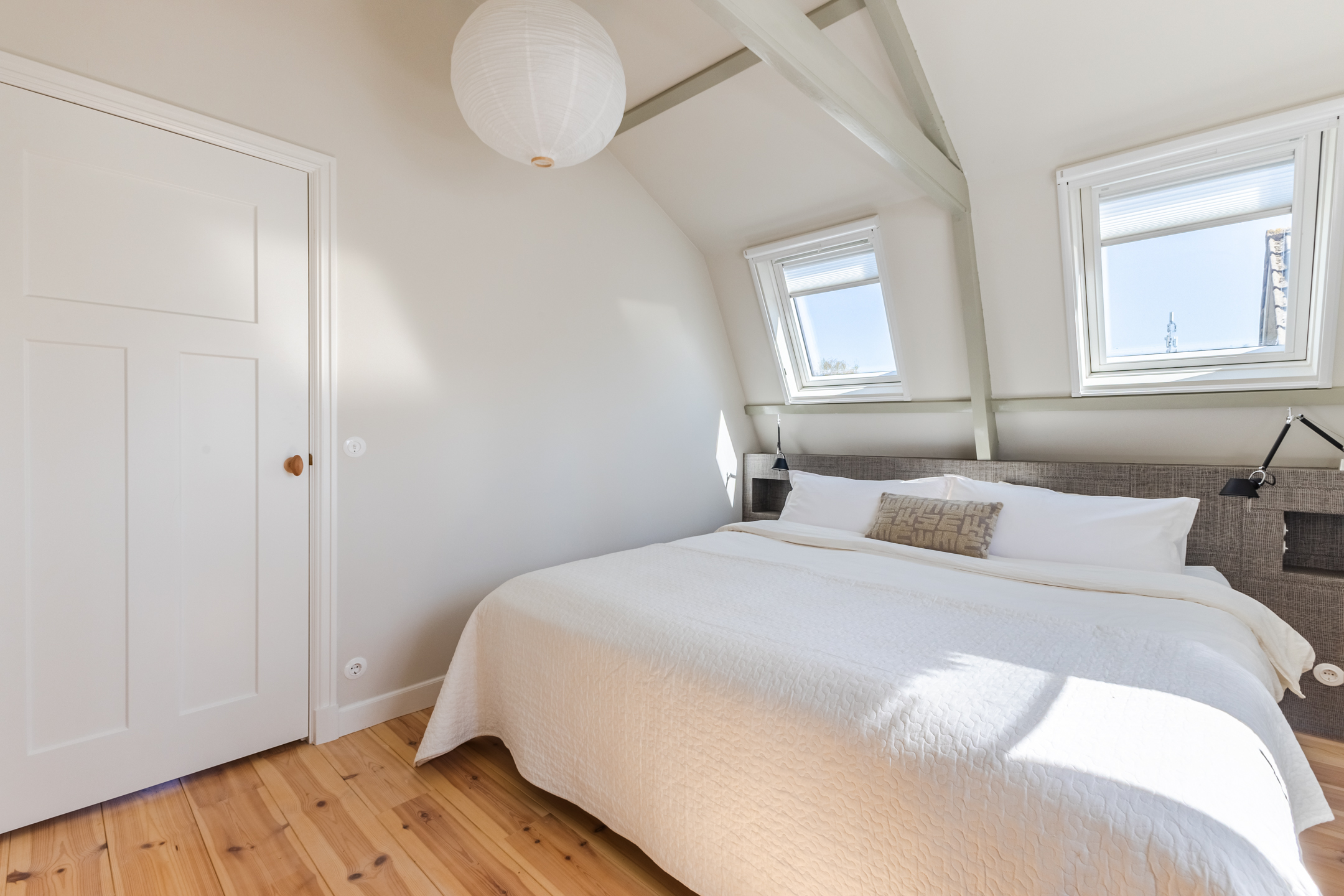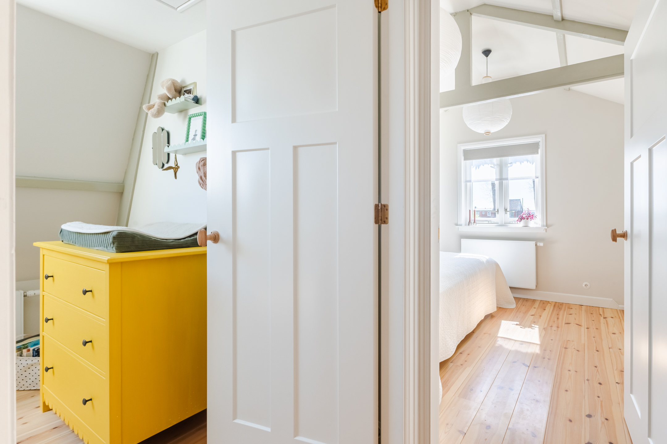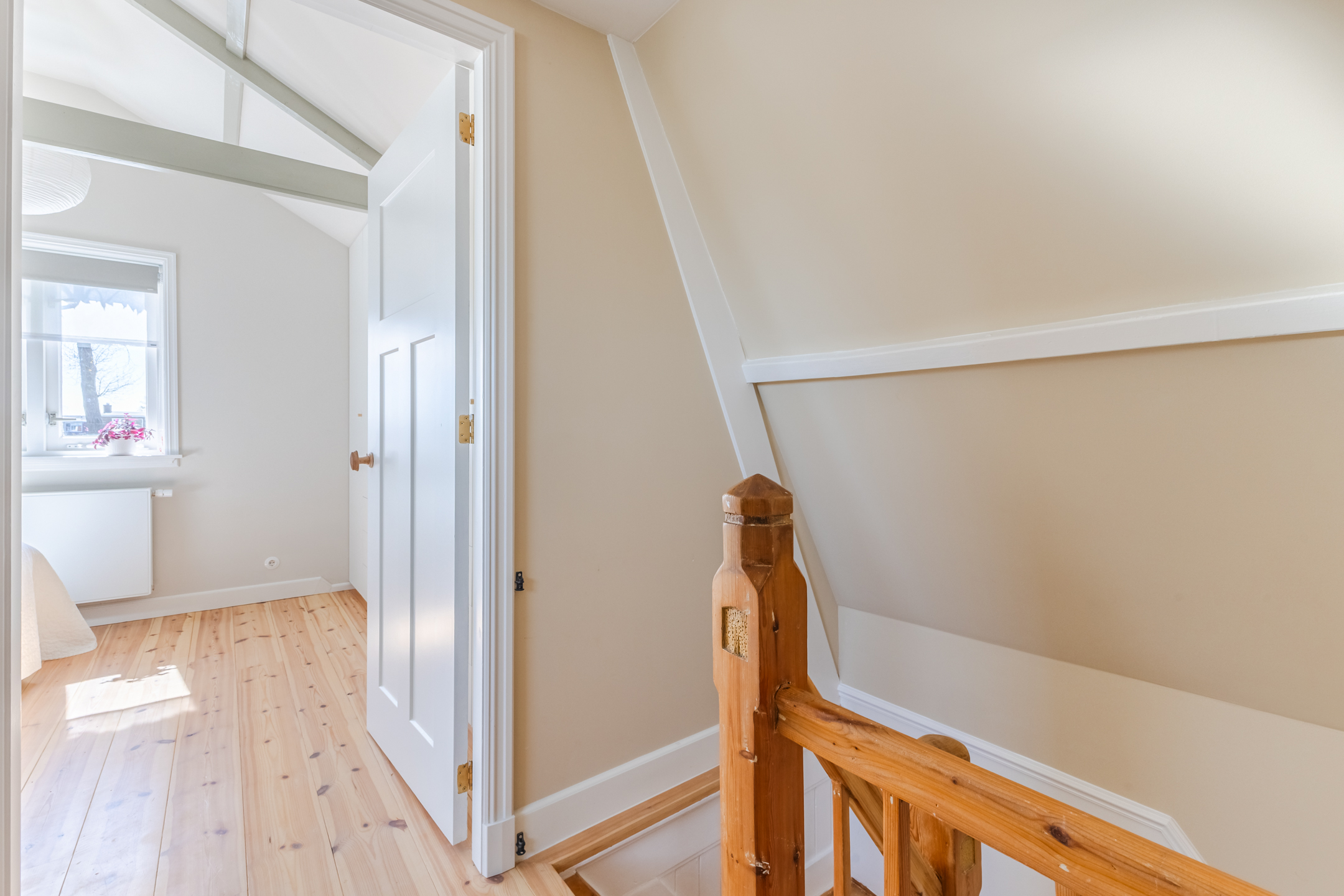 Deze verdieping beschikt over twee slaapkamers en een badkamer. Beide slaapkamers zijn heerlijk ruim en voorzien van een massief houtenvloer. Daarnaast genieten beide kamers van een prettige lichtinval. De grootste slaapkamer van de twee is uitgerust met een moderne inbouwkast en extra opbergruimte.