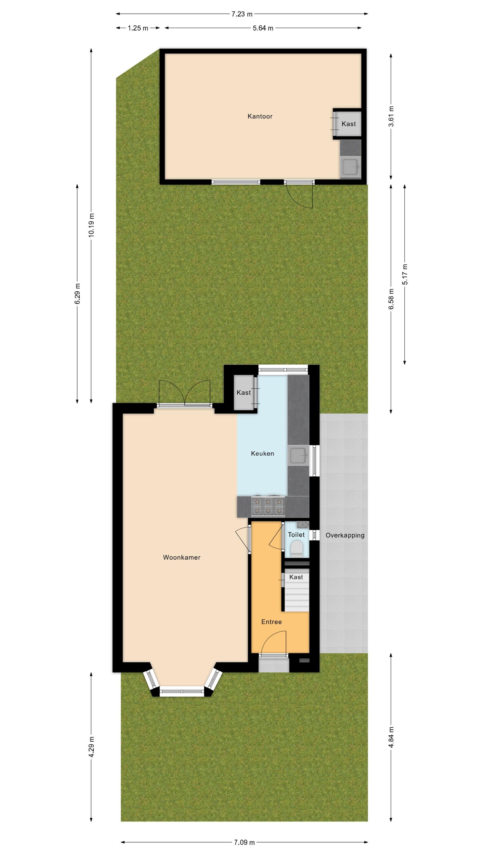 • Woongenot: woonhuis 71.2 m² + bijgebouw 20.4 m²