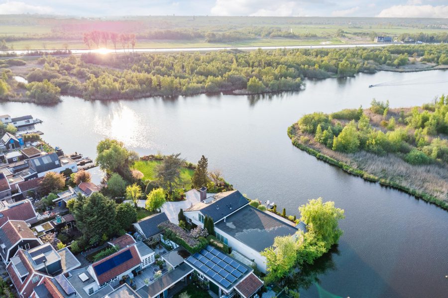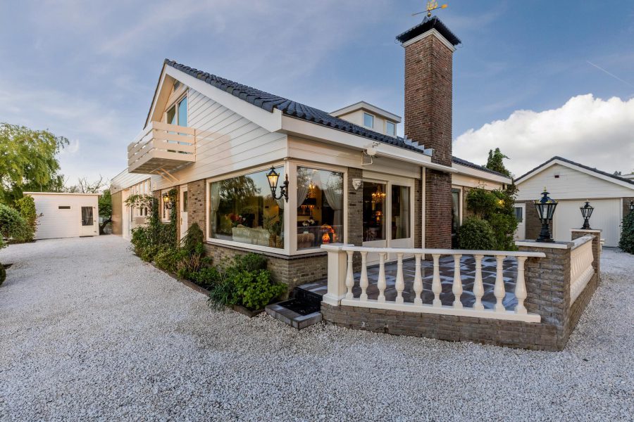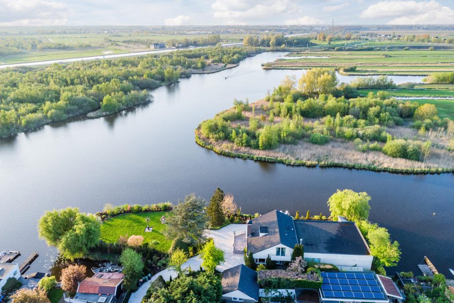 De woning is gelegen op een werkelijk unieke locatie, omringd door doorgaand vaarwater. Dit lichte en comfortabele huis uit 1983 is uitstekend onderhouden en afgewerkt met luxe materialen. Binnen vind je een royale living met een stijlvolle keuken en drie slaapkamers, waarvan één met een aangrenzende badkamer op de begane grond – ideaal voor gelijkvloers wonen. De fraai aangelegde, royaal bemeten tuin is een lust voor het oog, met onder andere een eigen steiger aan het water. Hier geniet je optimaal van het buitenleven in alle rust en privacy.