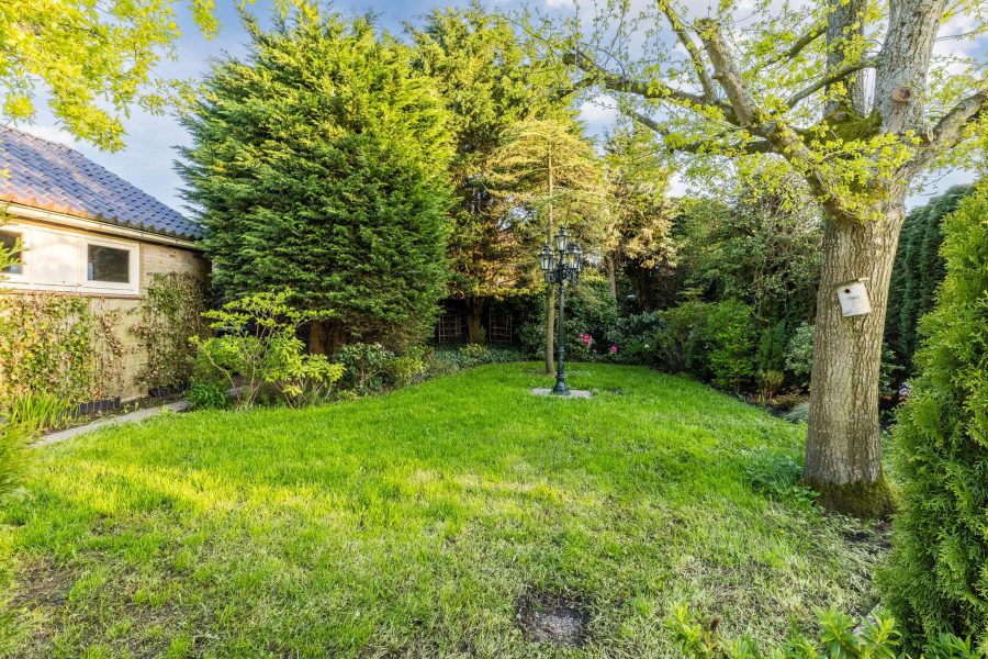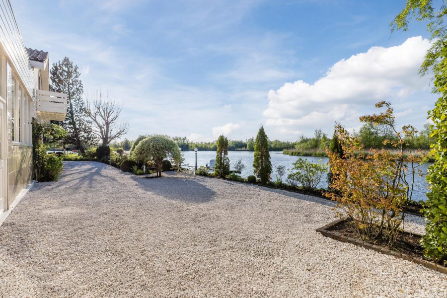 The house has a beautifully landscaped mostly green garden around the house, The very spacious garden is surrounded by water. You can realise several nice lounge areas here. There is now a terrace adjacent to the house and a terrace by the water. The garden is beautifully mature and excellently cared for. You can enjoy the outdoors here. There is a storage room in the garden.