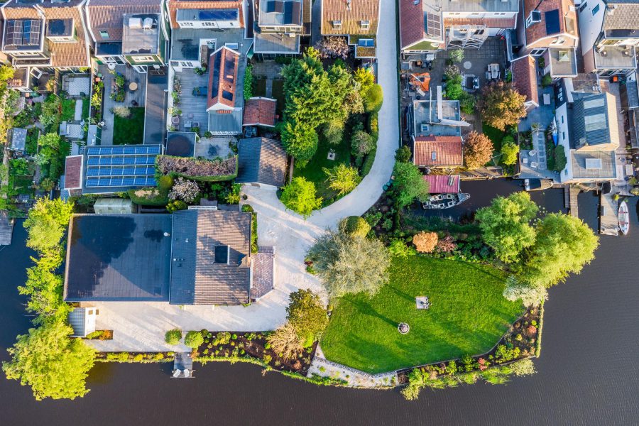 - In woonwijk, Vrij uitzicht, Aan vaarwater