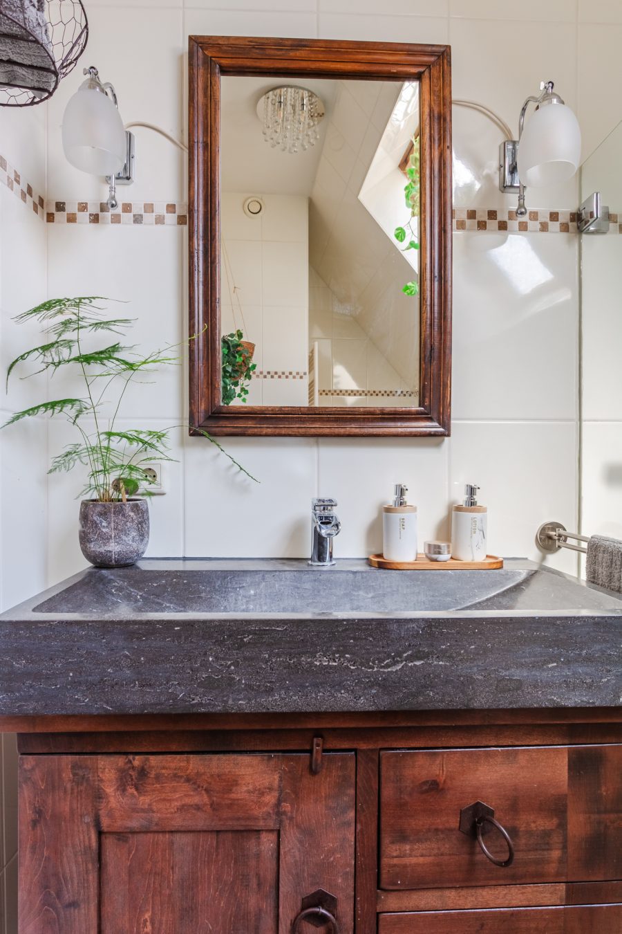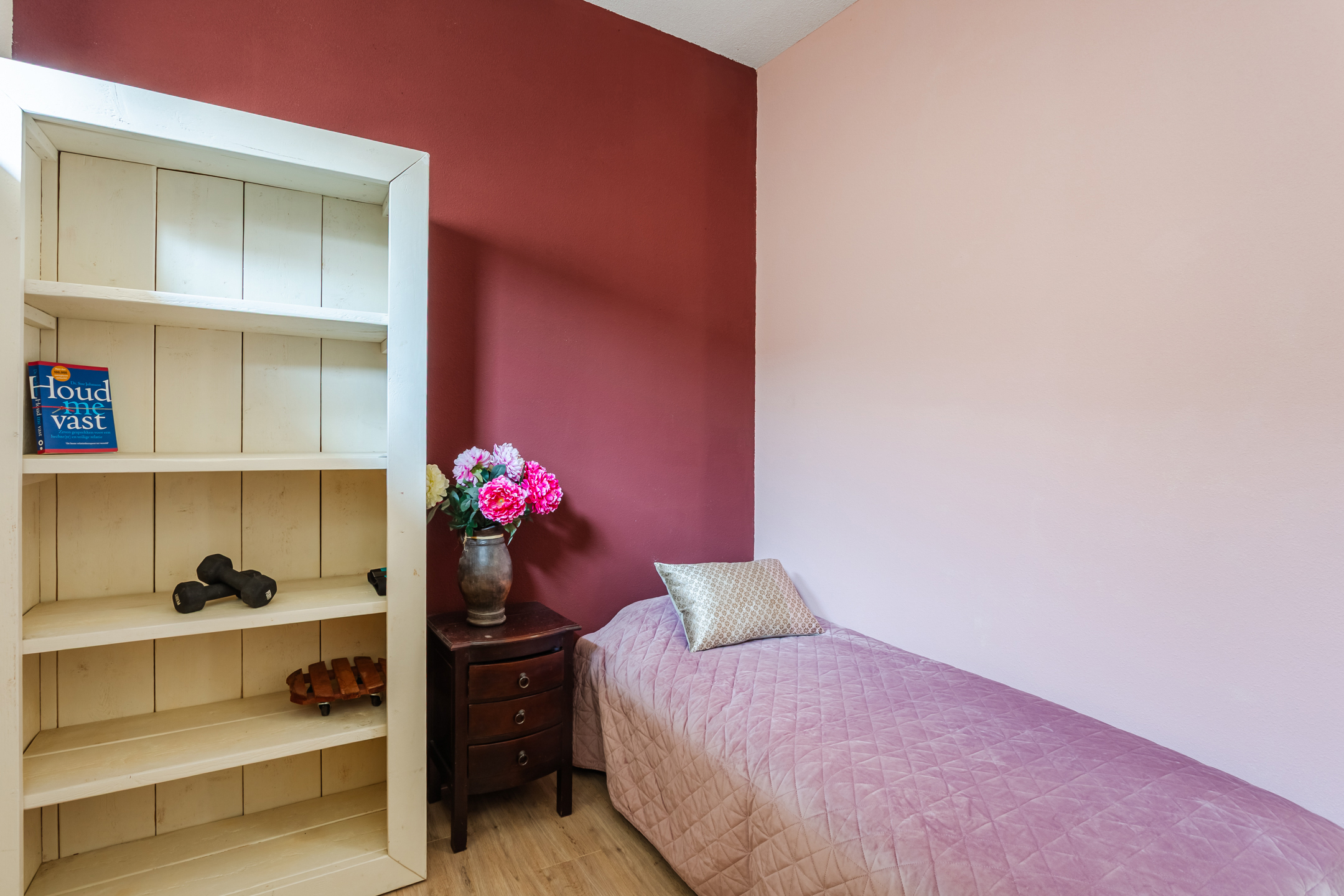 The apartment has three spacious bedrooms. These rooms are beautifully finished and enjoy pleasant natural light. One of these bedrooms provides access to the balcony. The centrally located bathroom dates from 2012, but was renovated in 2023 with a new sink, faucet, cabinet and lighting. You will also find a bathtub, shower cabin and a connection for the washing machine here. The bathroom is finished with gray floor tiles and white wall tiles. There is a separate toilet, finished in the same style as the bathroom.