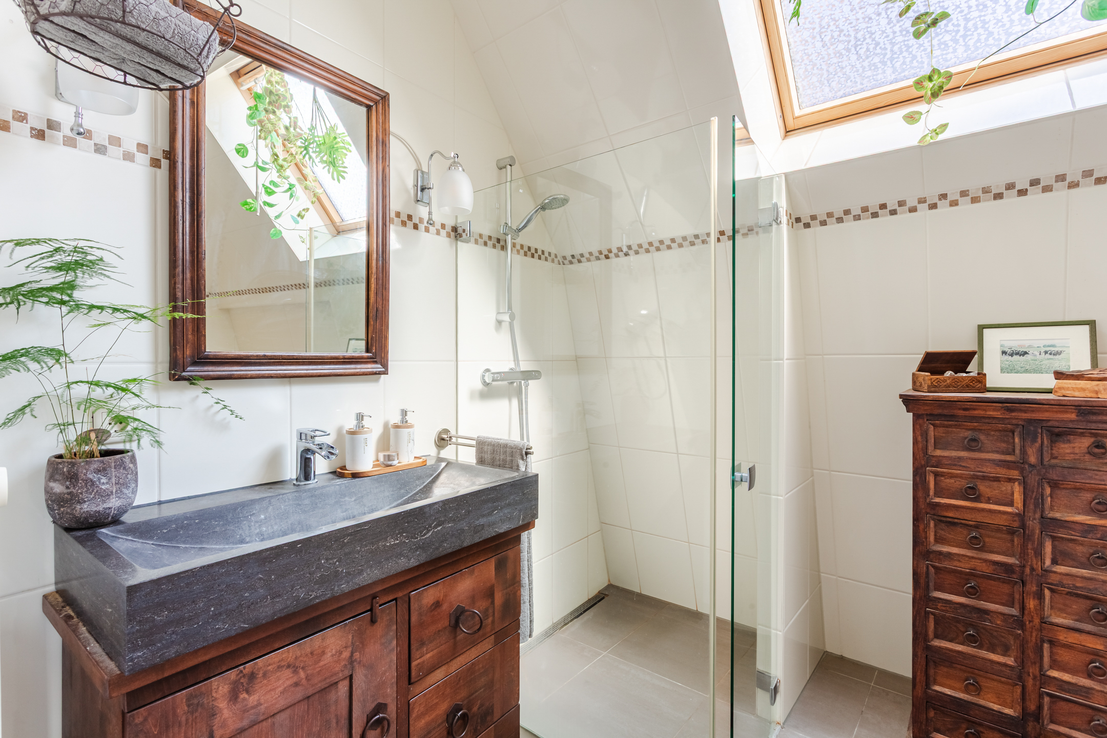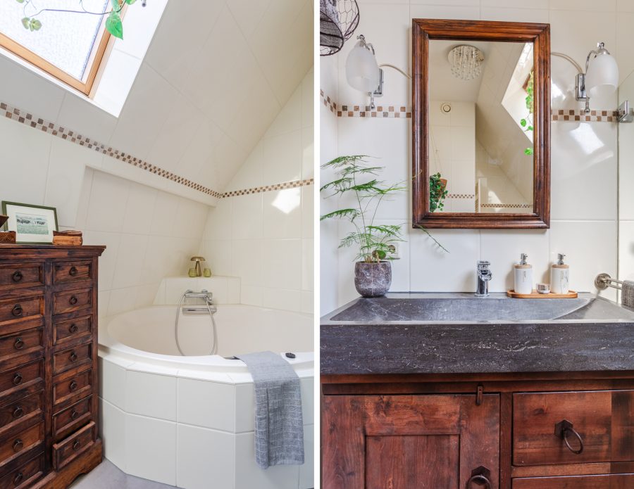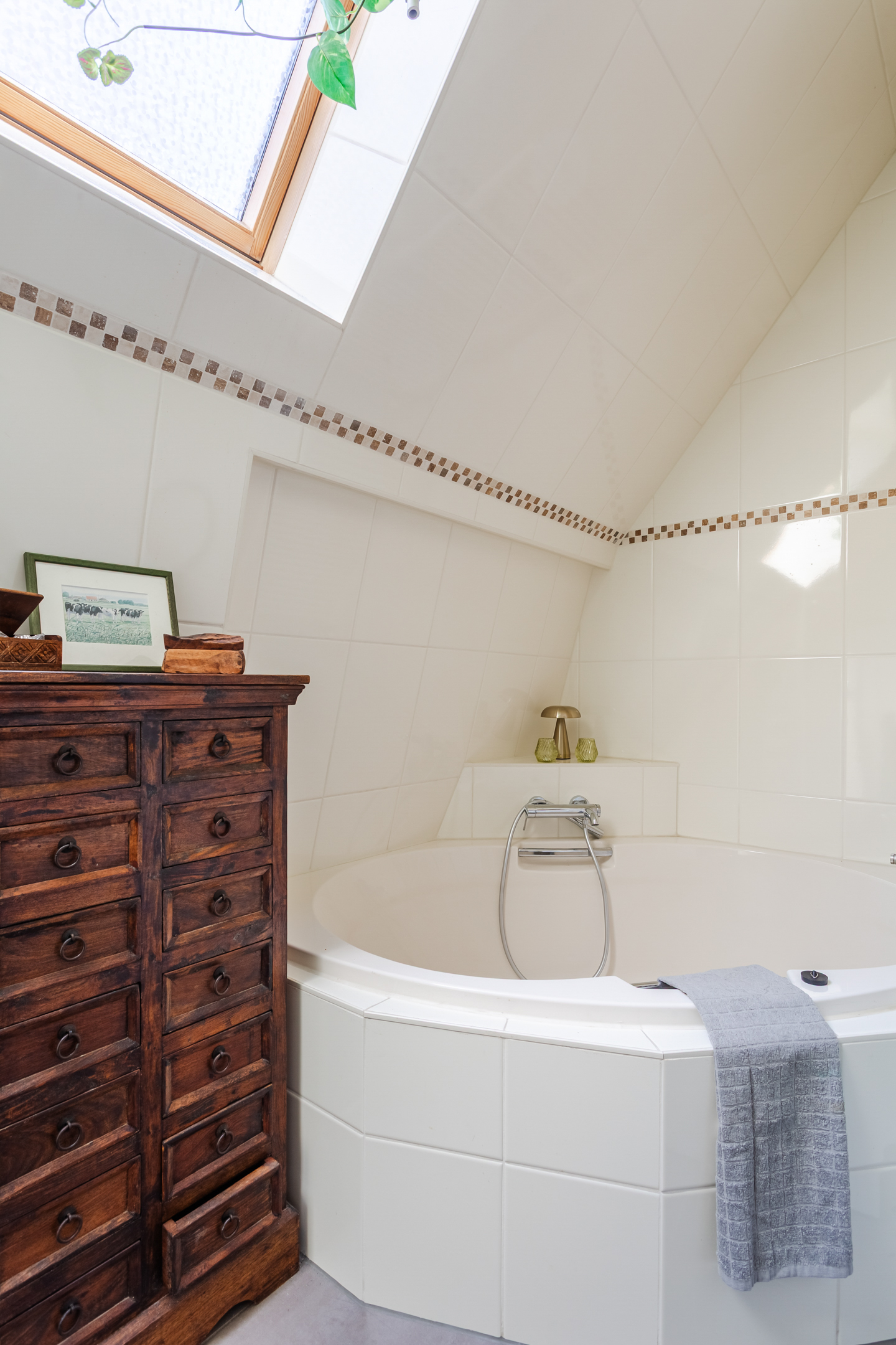 • Ruime badkamer met wastafel, ligbad en douchecabine