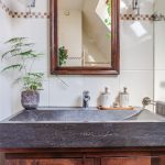Doors provide access to the large terrace. The terrace is nicely tiled and offers enough space for a cozy seating area. This is a wonderful place to enjoy the sun. You can do so in peace, because the wooden fences provide plenty of privacy.