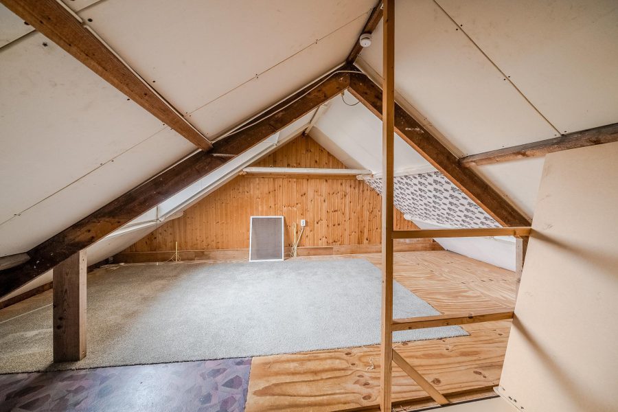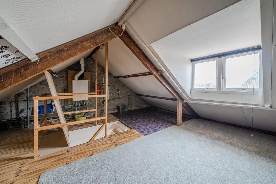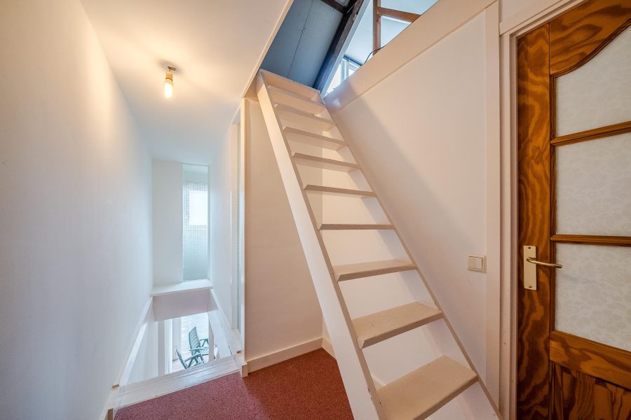Through the fixed staircase on the second floor you reach the attic of this house. Because of the available space, the attic offers several possibilities. It is possible to realize an extra bedroom, but it is also an option to turn it into a work or hobby room.