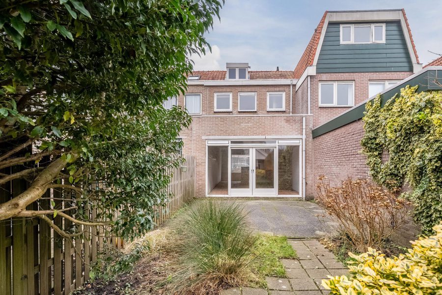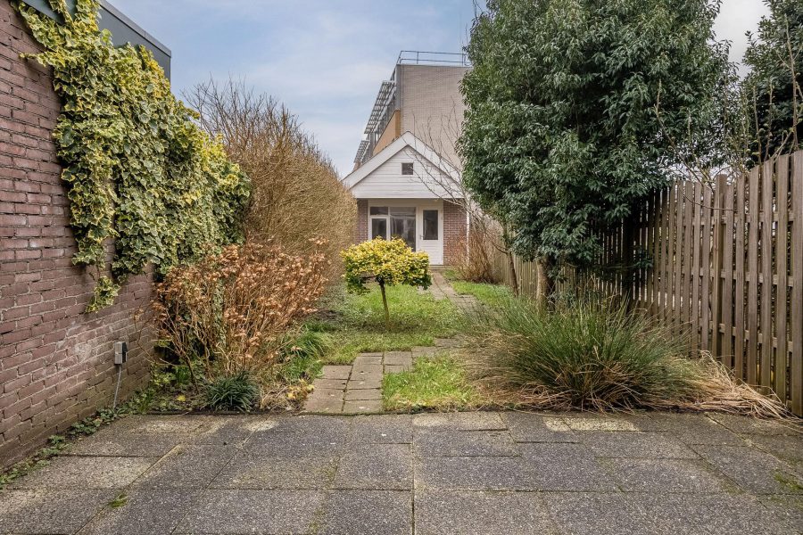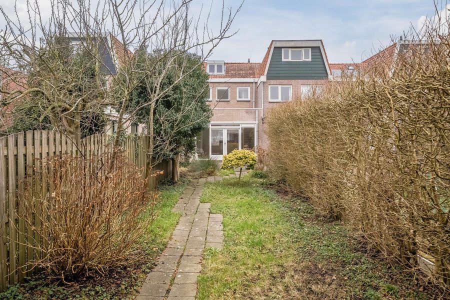 Het huis heeft een zeer diepe achtertuin op het zuidoosten. De tuin is zowel groen als betegeld en biedt genoeg ruimte om meerdere loungeplekken in te richten. De achtertuin is rondom goed beschut, waardoor je in alle rust van het zonnetje kunt genieten. Achterin de tuin staat een grote schuur met aangrenzend een overkapping. De stenen schuur met zolder biedt ruimte om spullen op te bergen en fietsen te stallen.