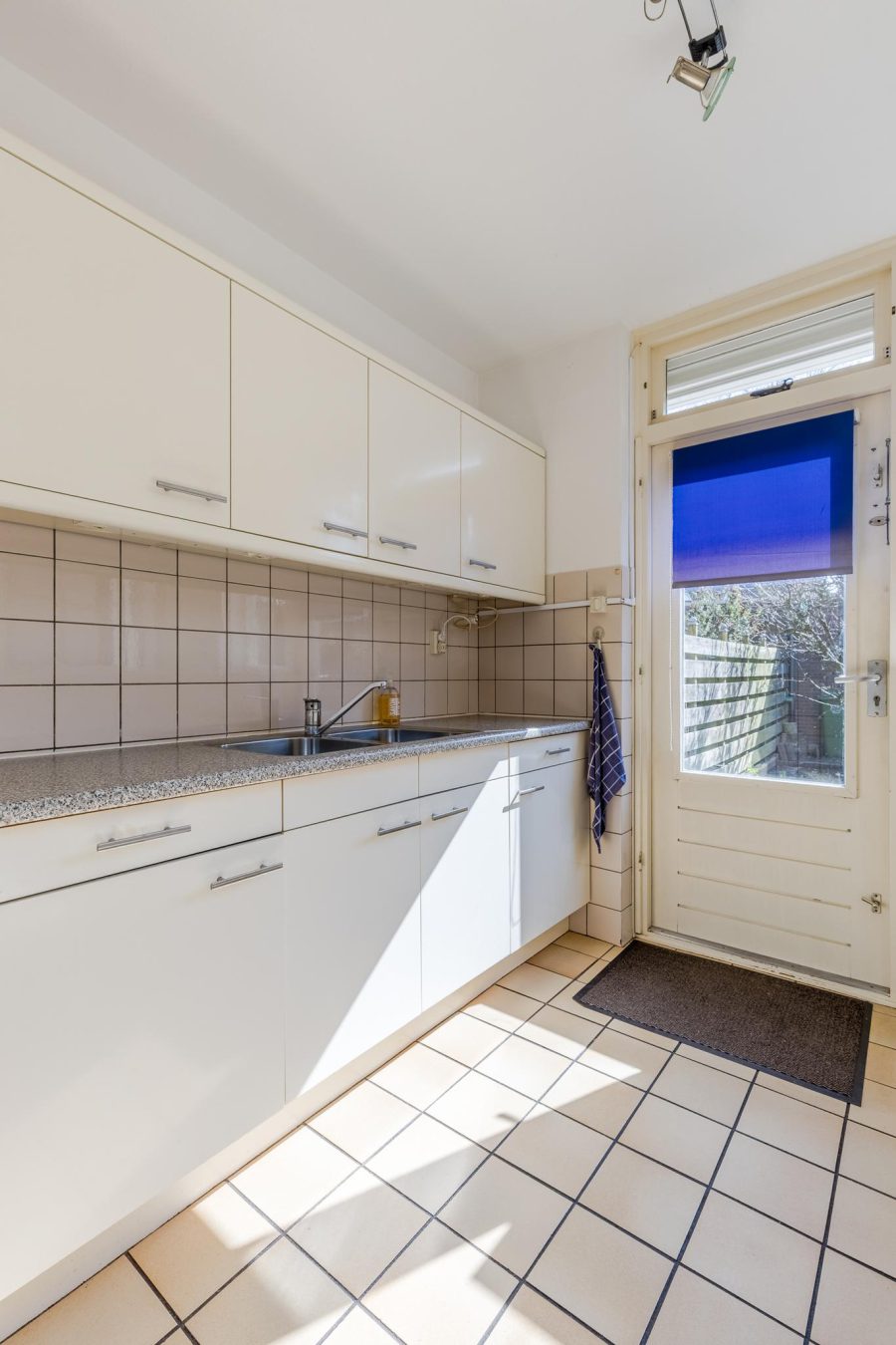 The house has a front garden and a deep, partly green, partly tiled backyard with stone (bicycle) shed. The back garden offers a lot of privacy and is lovely and sunny. Attached to the house is a terrace where you can create a nice lounge area. There is an awning at the back wall of the house, so you can always find a spot in the shade. There is a back entrance.