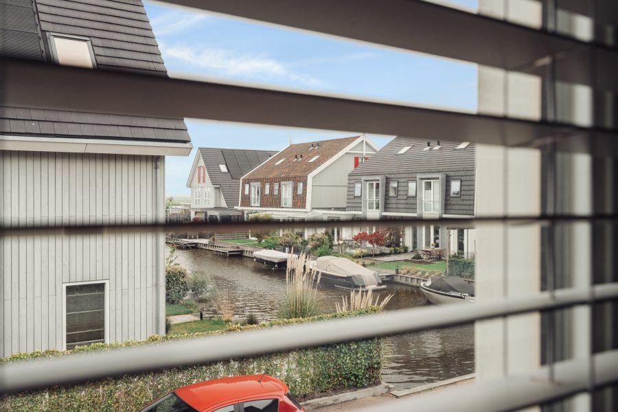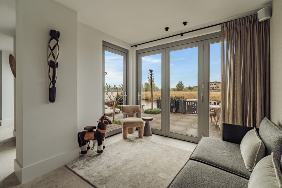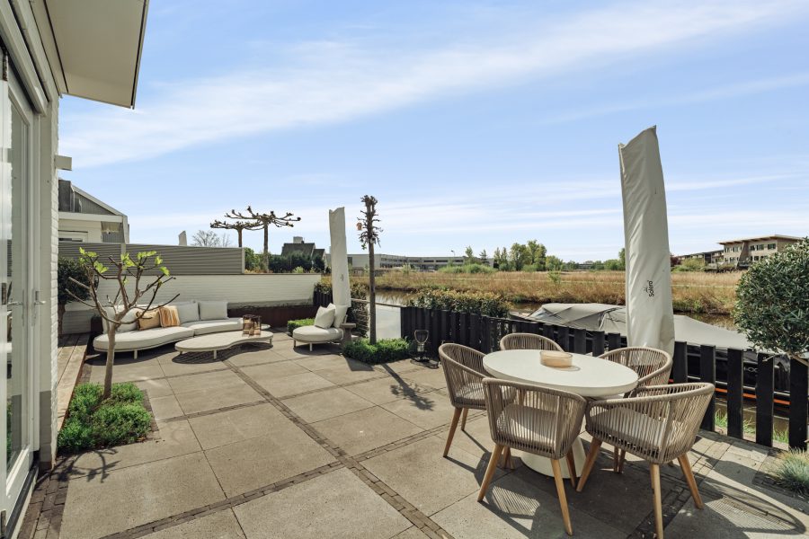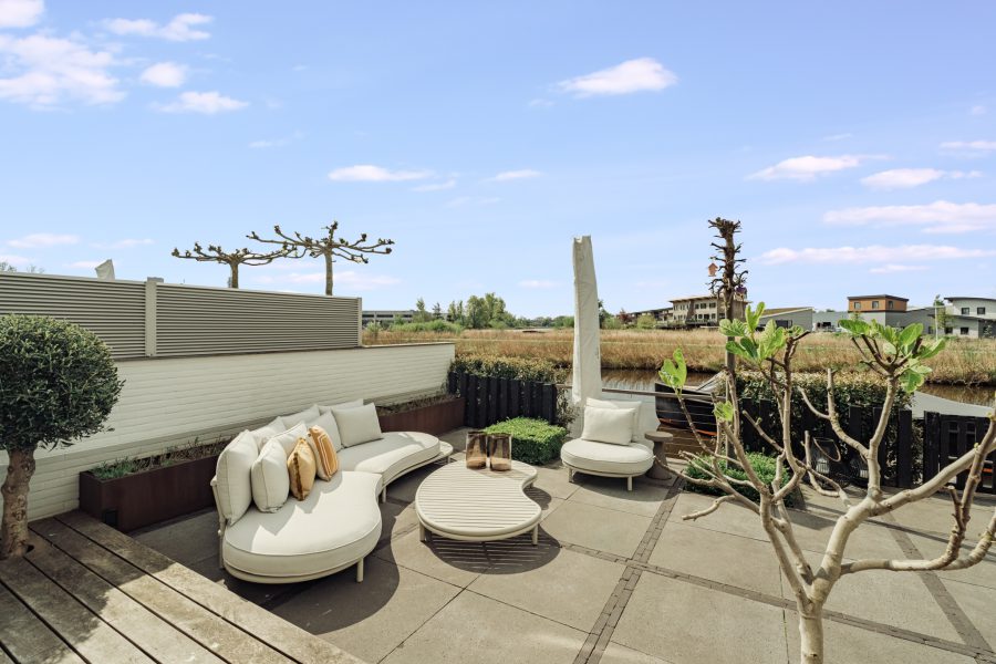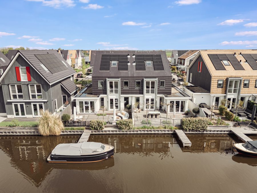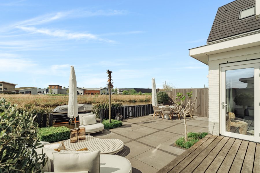 Buiten wacht de zon je op: de tuin ligt op het zuidwesten én je eigen boot ligt aan je privésteiger. Een droom die werkelijkheid wordt met mooi weids uitzicht op natuur en groen.