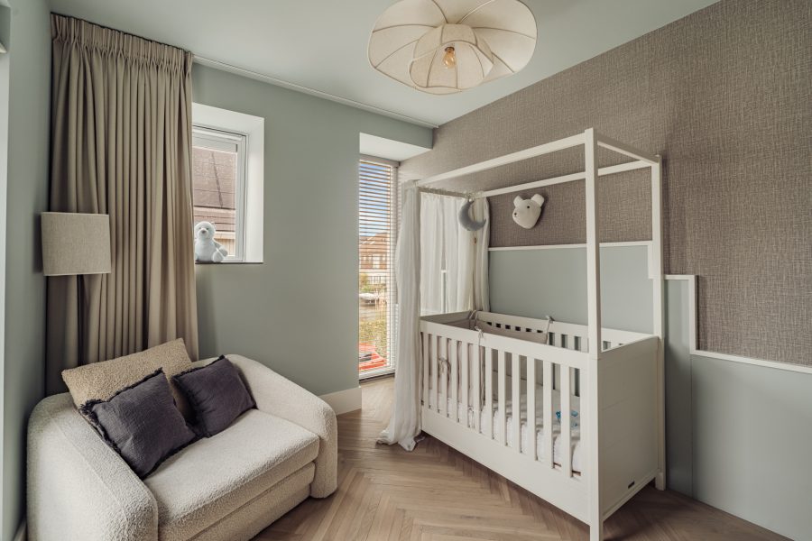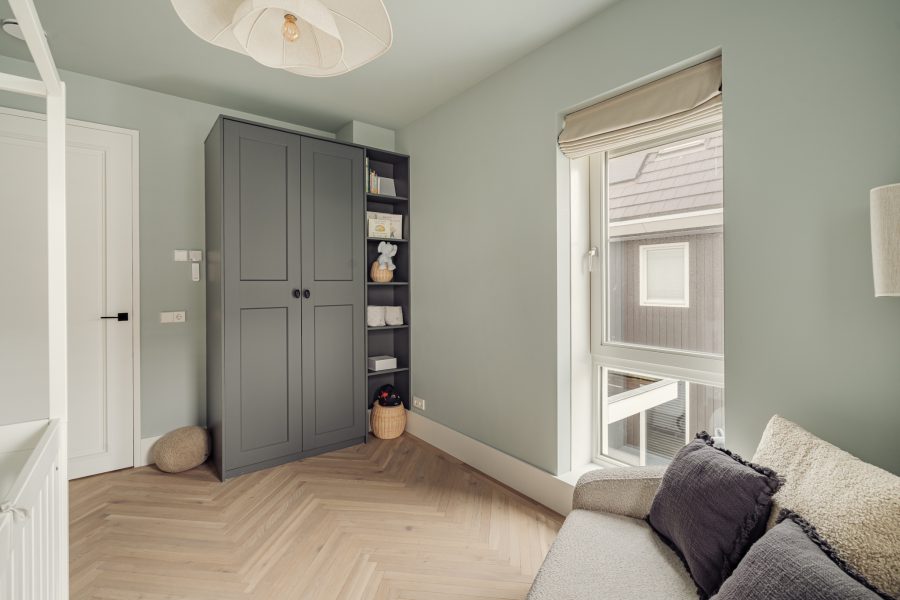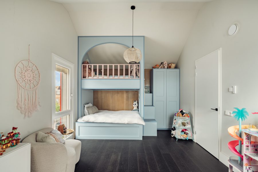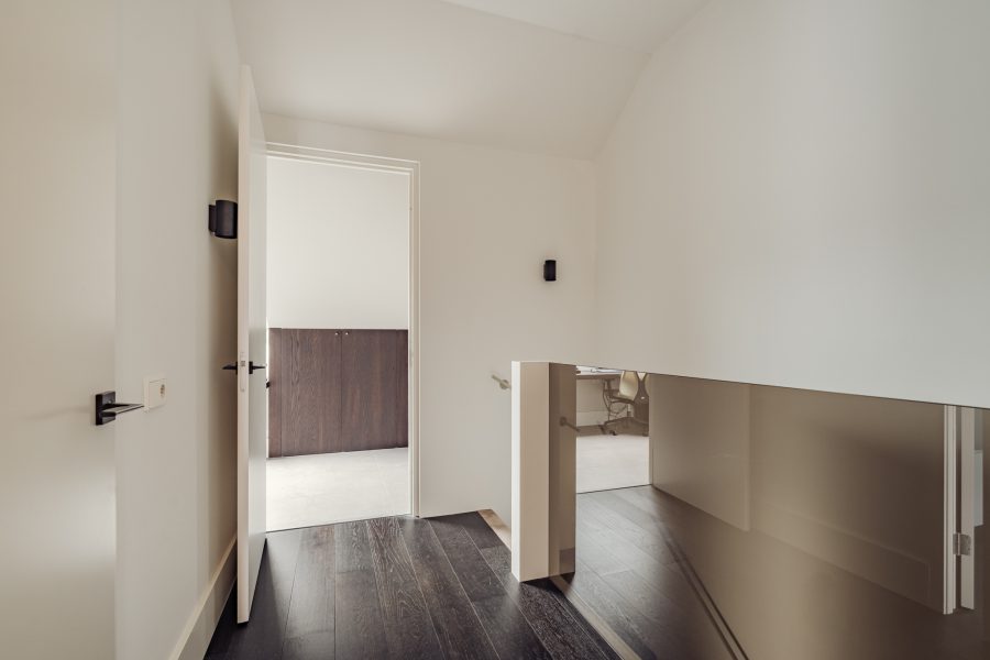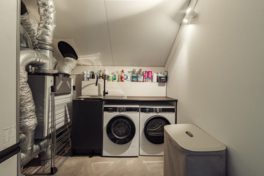 De tweede verdieping biedt nog meer: een stijlvolle werkkamer met donkerhouten maatwerkmeubels van bureau tot kasten wand. En kijk dan, die gave royale kinderslaapkamer met een indrukwekkend tweelaags bed. De droom van ieder kind om hier te mogen slapen en spelen. Er is een aparte technische ruimte met wasruimte en warmtepomp.