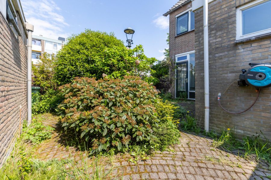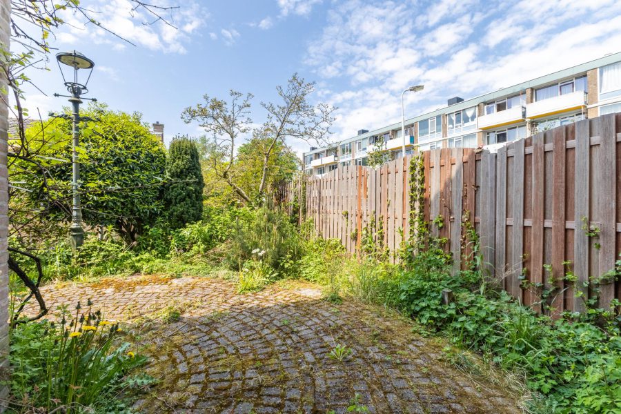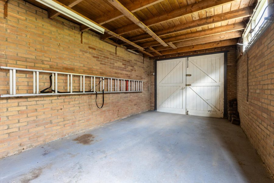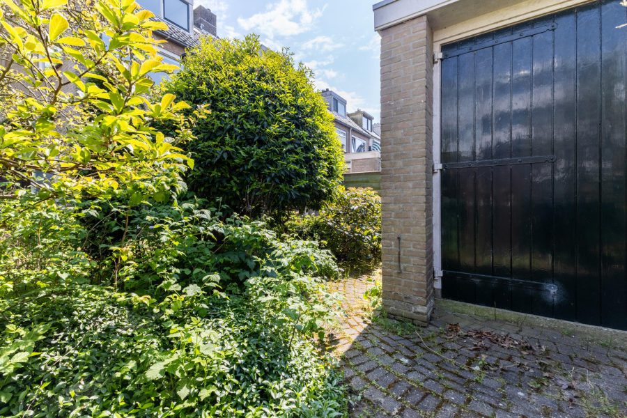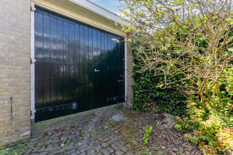 The property has a partly green, partly paved front, side and back garden. The sheltered back garden faces northwest. There is room enough for a lounge area or to put a dining table outside. The garden currently requires maintenance. At the back of the garden is a spacious garage/storage room with electricity. A nice space to practice a hobby, for example.