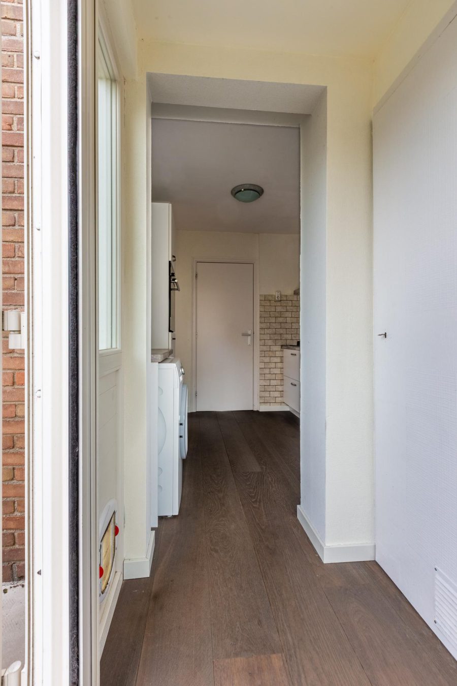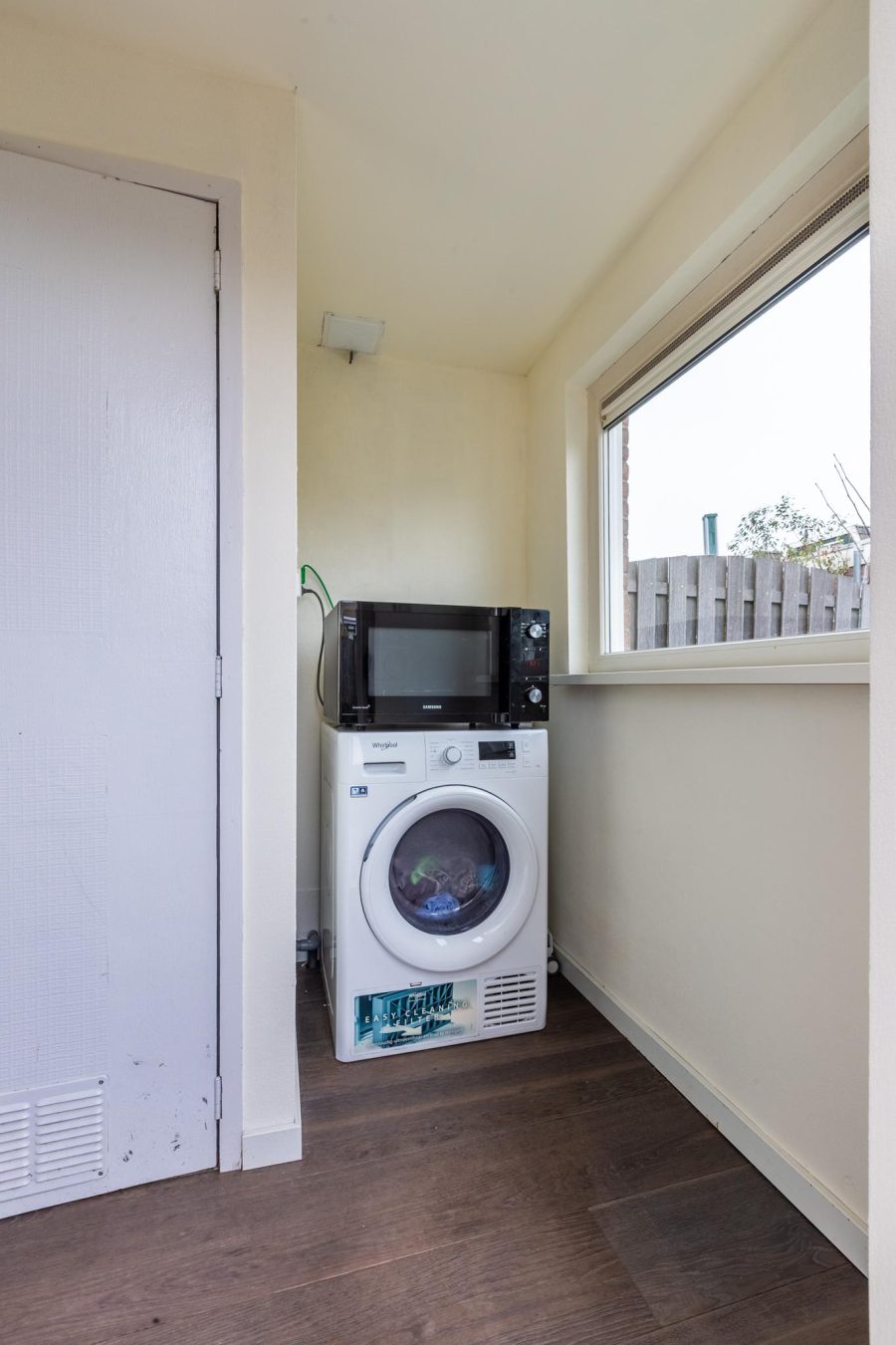 Through the wide pavement, we reach via the low-maintenance front garden with seating and the front door of the house. Entrance with meter closet and wardrobe, staircase to the first floor, standing toilet and through the kitchen access to the living room. The spacious kitchen has white fronts and is equipped with various built-in appliances. The washing machine connection is also located here. Through the kitchen, the pantry is accessible. Here, a closet houses the central heating system and the connection for the dryer. The scullery has an access door to the garden. The spacious, bright living room has a window at both the front and rear. You have a nice light here. The living room has room for a spacious seating area and a dining table. There are wooden floorboards on the floor and the walls and ceilings are neatly finished.