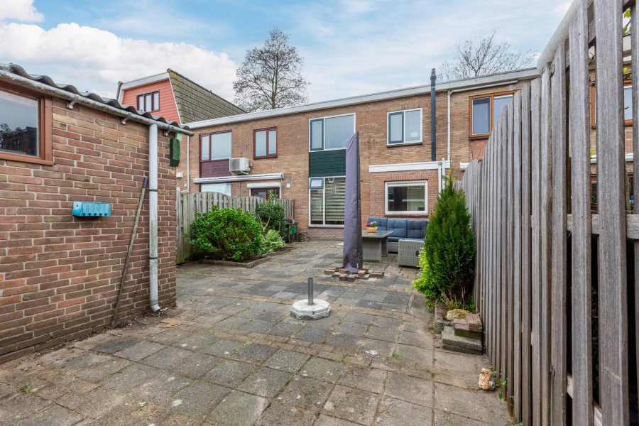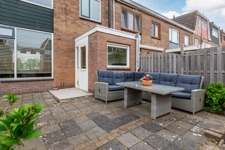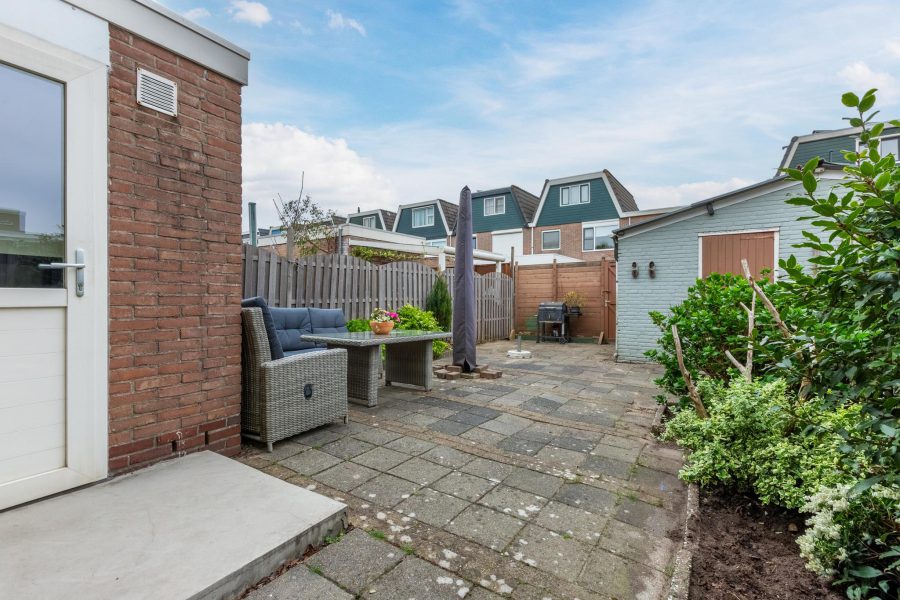 De woning heeft een diepe onderhoudsvriendelijk voortuin en een zonnige, beschutte en grotendeels betegelde achtertuin. Er is ruimte genoeg om een fijne loungeplek te realiseren en voor kinderen is het een fijne veilige plek om te spelen. Achterin de tuin staat een stenen (fietsen)berging met elektra en er is een achterom.
