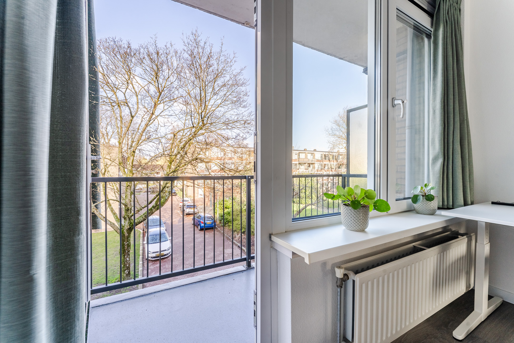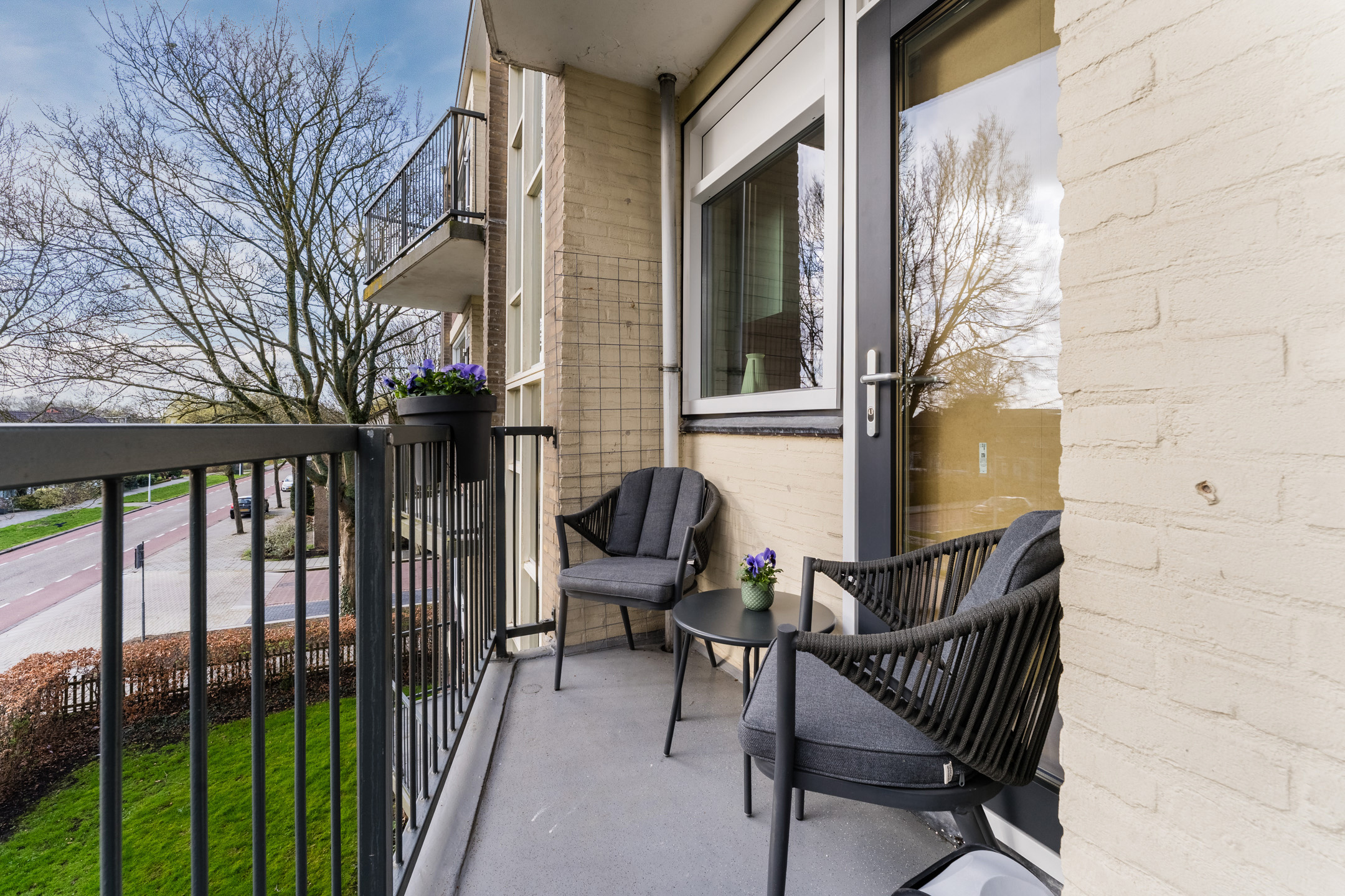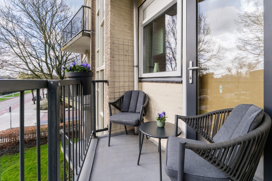 Het appartement beschikt niet over één, maar twee balkons. Zo heb je altijd wel ergens een zon- of een schaduwplek. Beide balkons bieden ruimte voor een gezellig zitje.