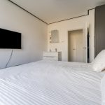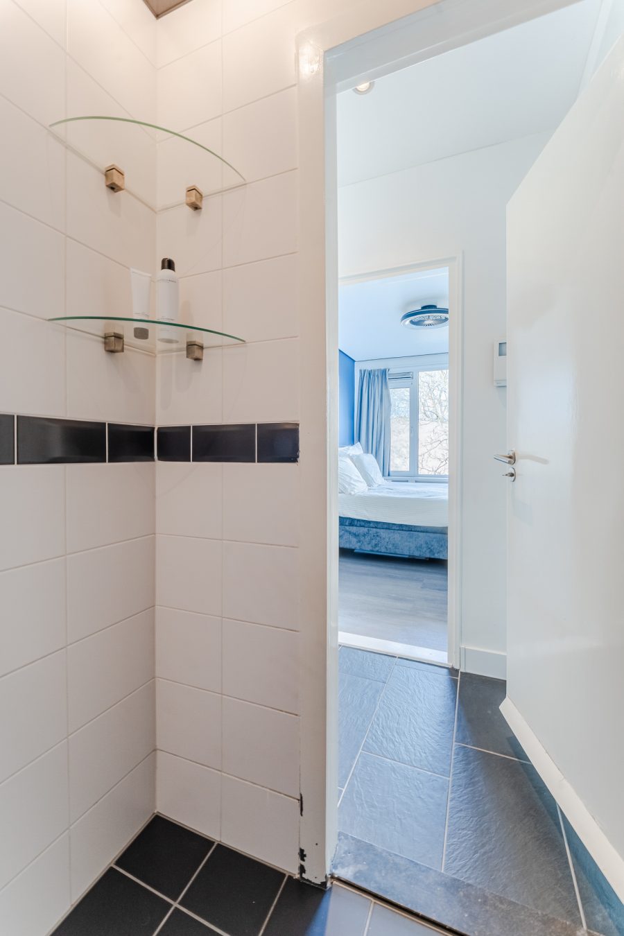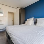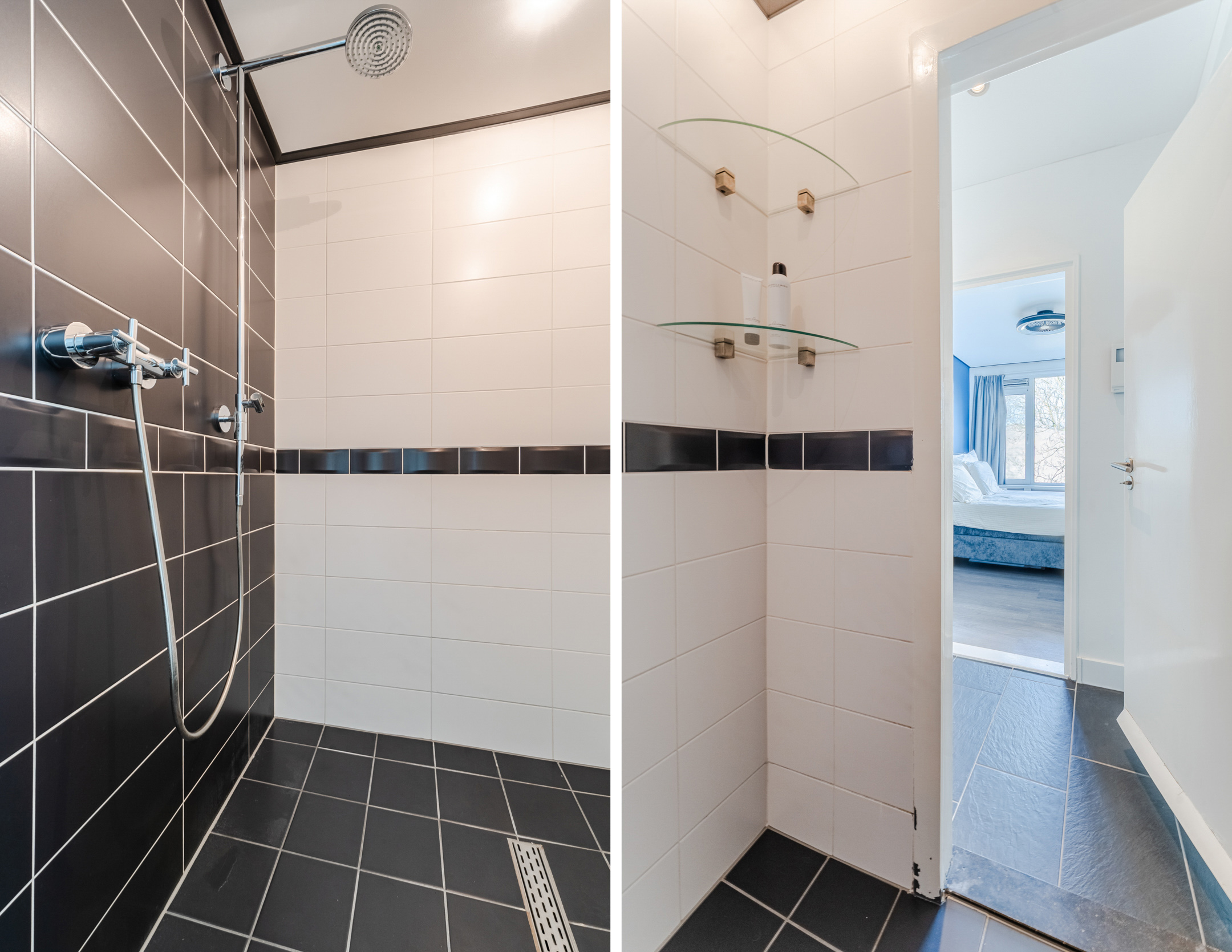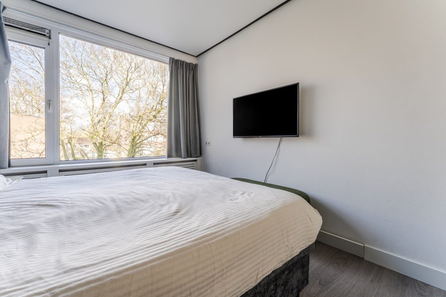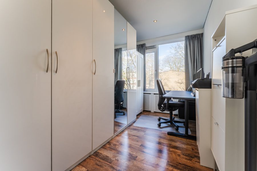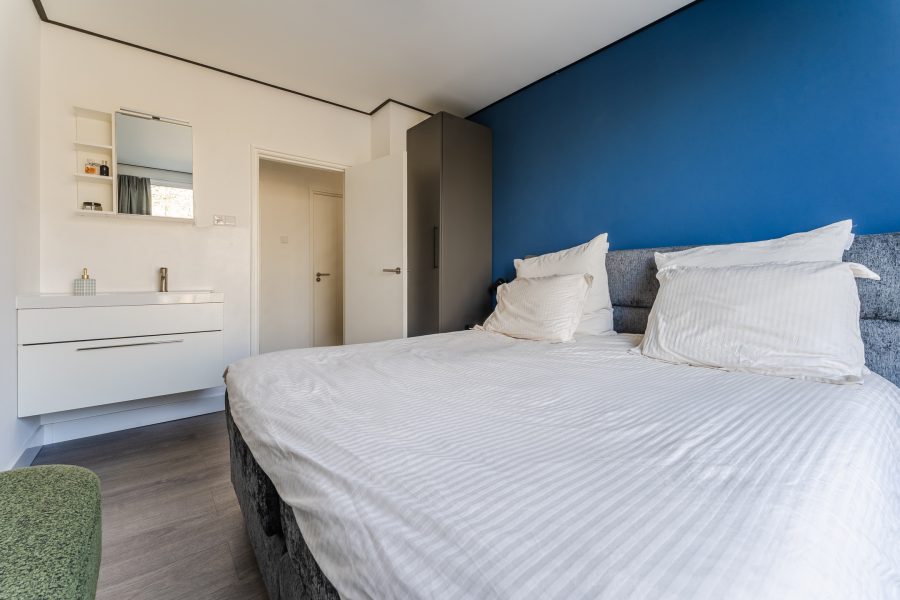 Er zijn twee slaapkamers aanwezig. Beide kamers zijn ruim van formaat, keurig afgewerkt en heerlijk licht. Eén van de twee slaapkamers is uitgerust met een eigen wastafel. De badkamer is afgewerkt met zwarte en witte tegels en uitgerust met een douche. Daarnaast bevindt zich een separaat toilet.